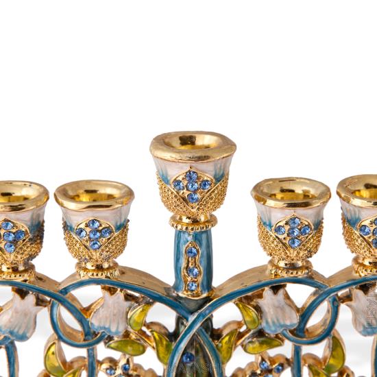 Matashi 7.5" Tall Hand Painted Enamel Menorah Candelabra w Flowers Design Accent