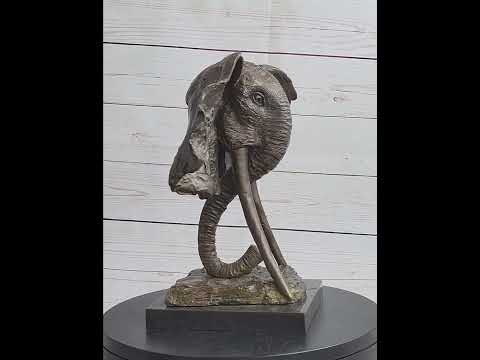 The sculpture rests atop a bronze base, providing a sturdy and elegant foundation that complements the piece's wild beauty. Signed by the renowned artist Milo, this sculpture is not only a remarkable work of art but also a testament to the artist's talent and craftsmanship. Whether displayed in a home, office, or gallery, this elephant sculpture is sure to draw admiration and become a cherished focal point.