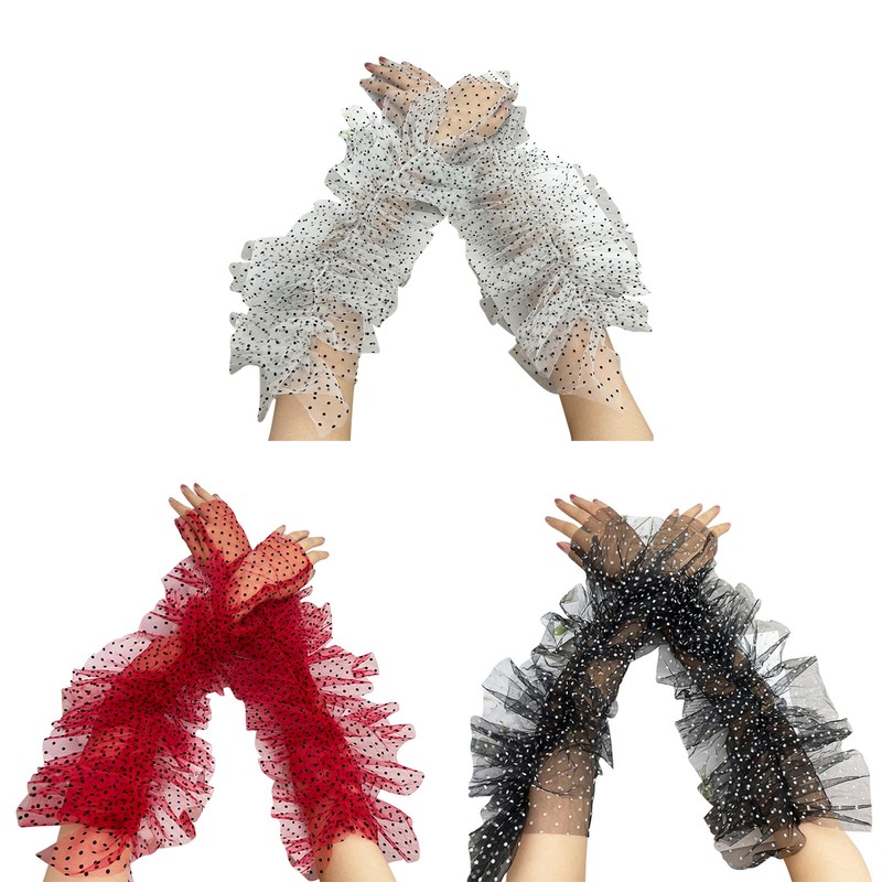 Mid upper arm length, exquisite workmanship, wrists and forearms without restricting movement or comfort.