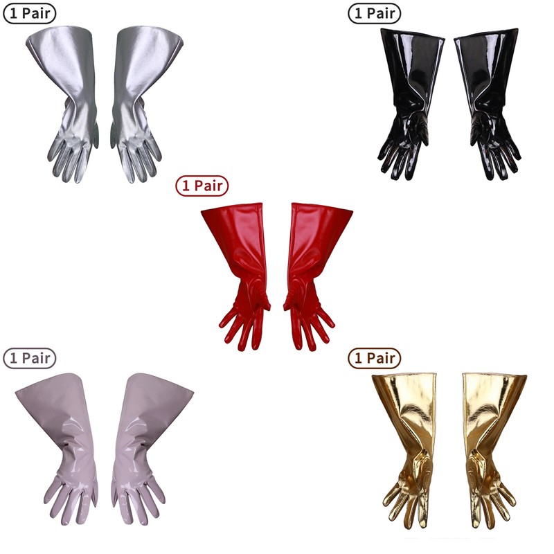 Glossy appearance long gloves, well match with leather dress, leather catsuit or other performance costume.