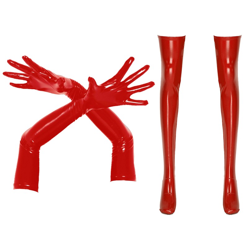 1 Pair Womens Wet Look Faux Leather Long Gloves with Thigh-High Stockings Party Clubwear.