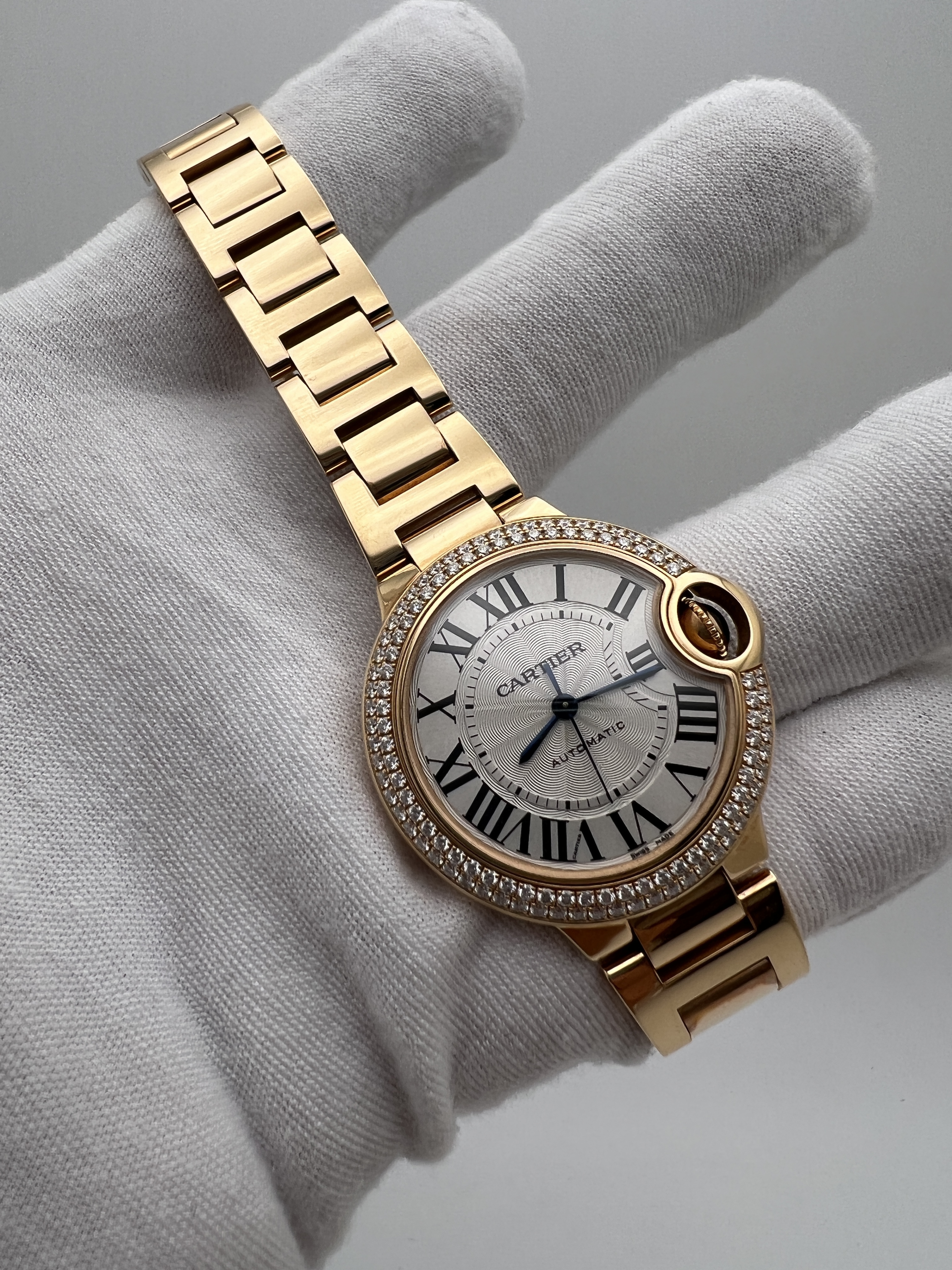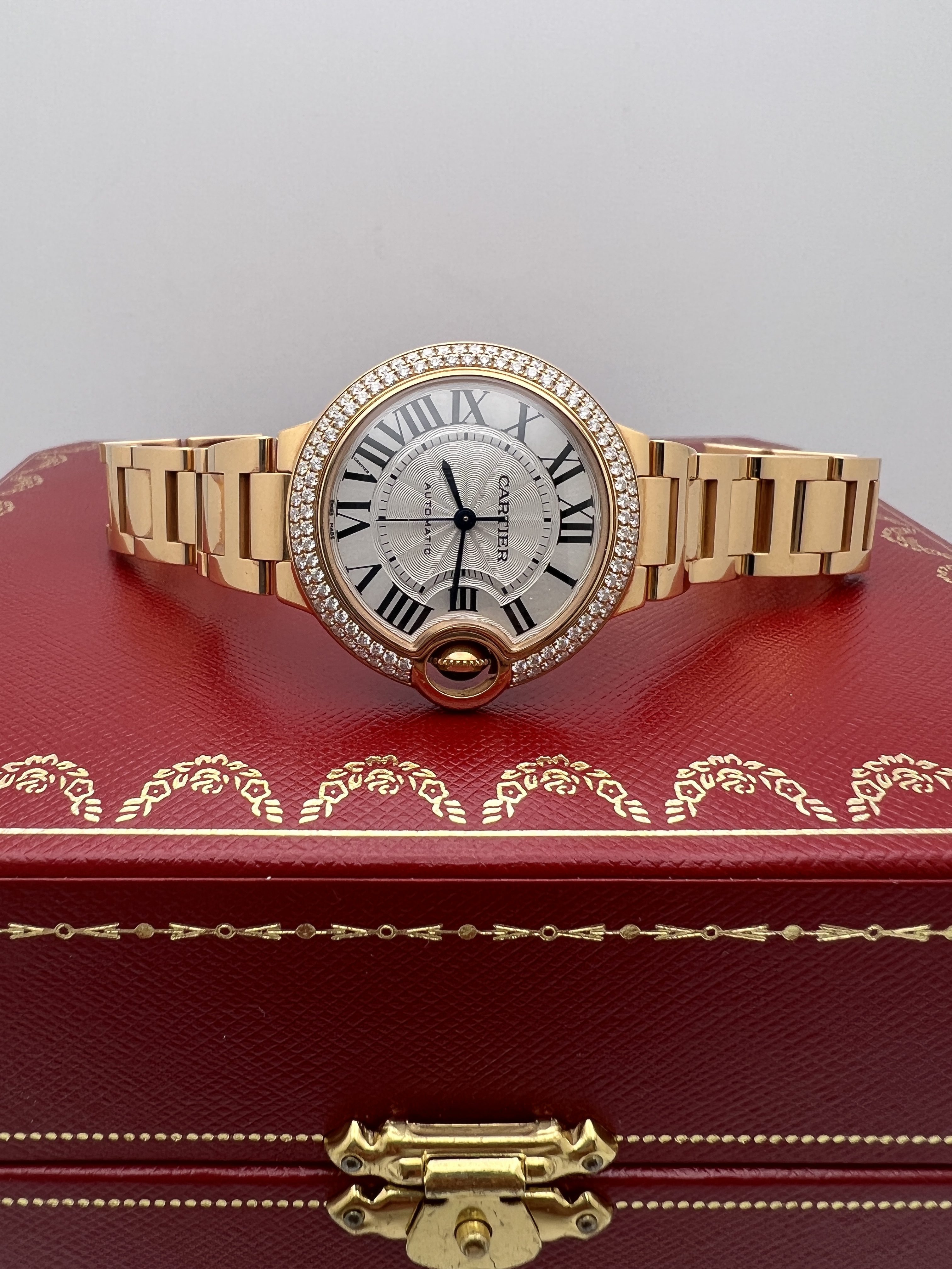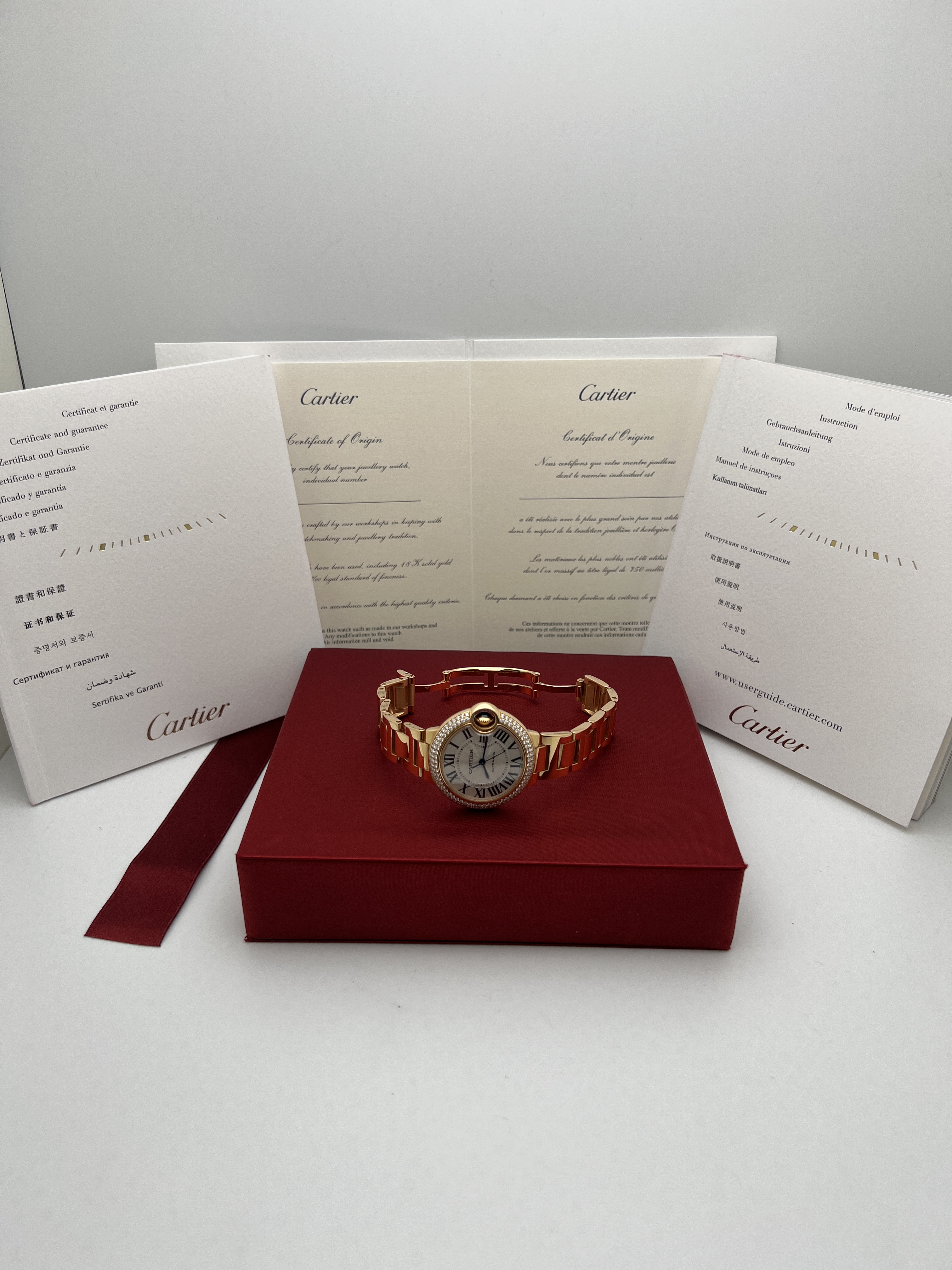Cartier Ballon Bleu 33mm 18K Rose Gold Original Diamond Bezel WE902064 B&P