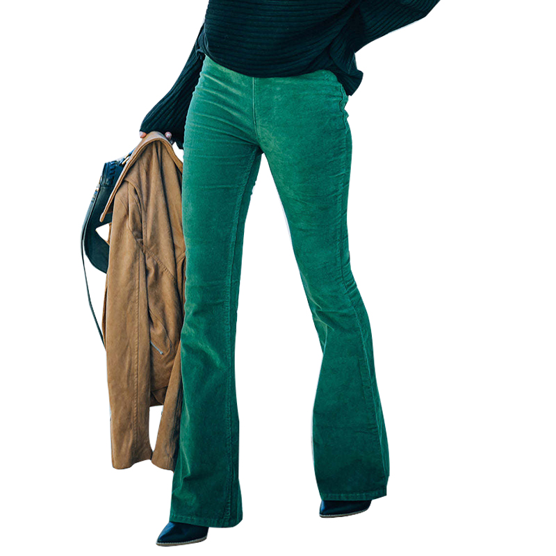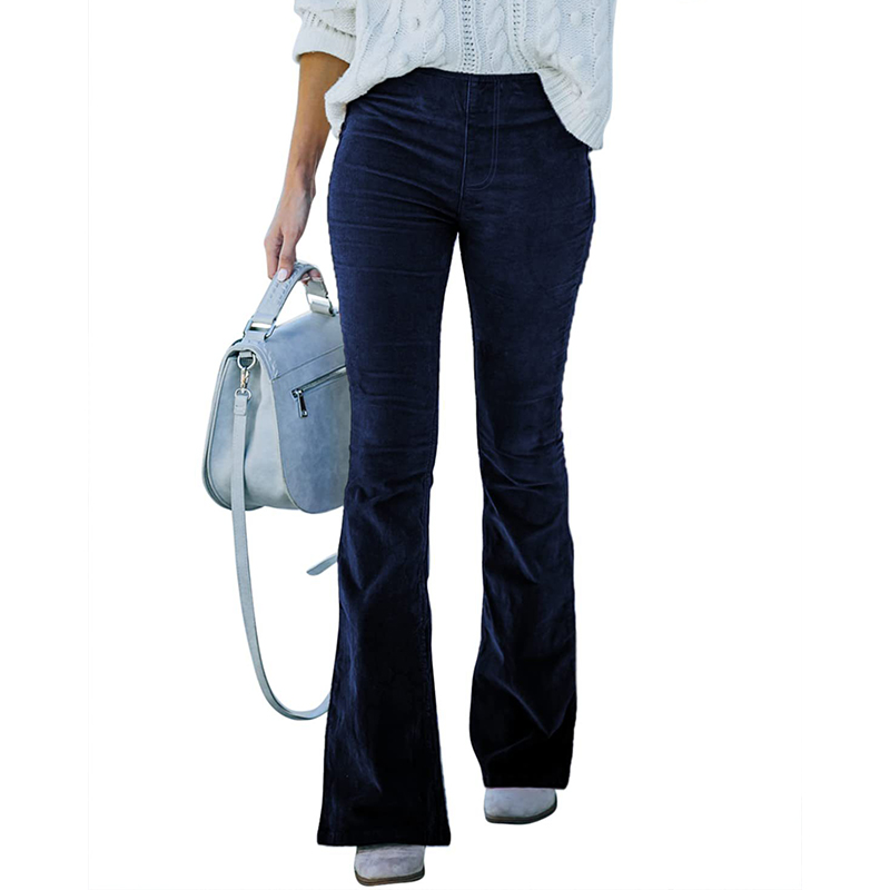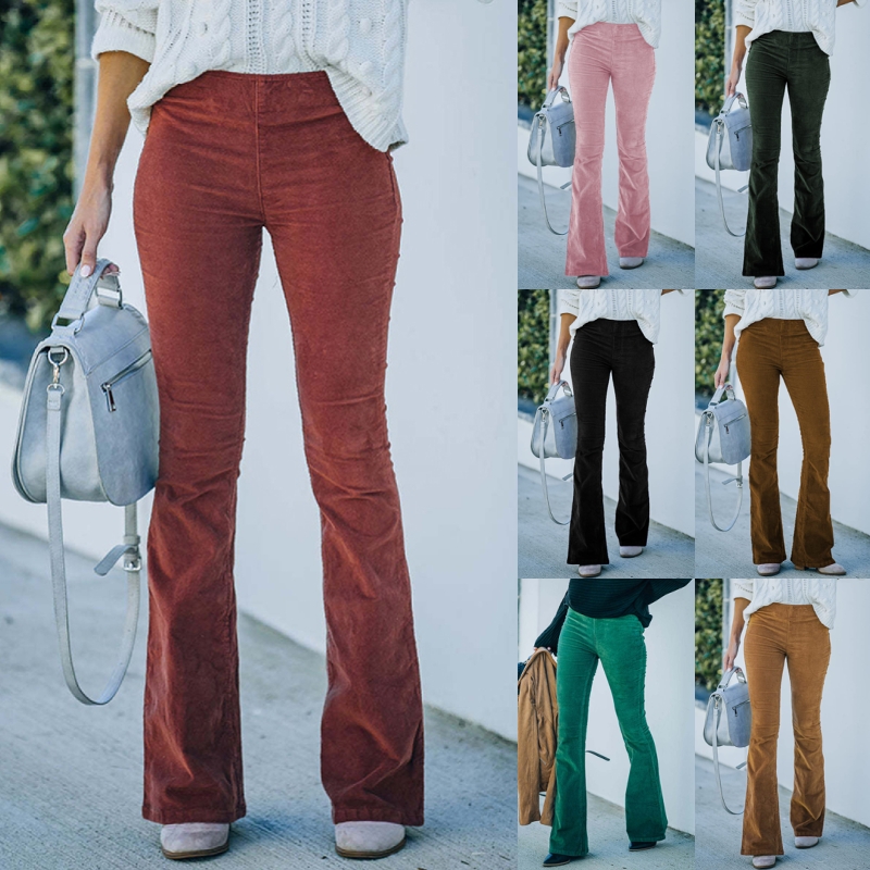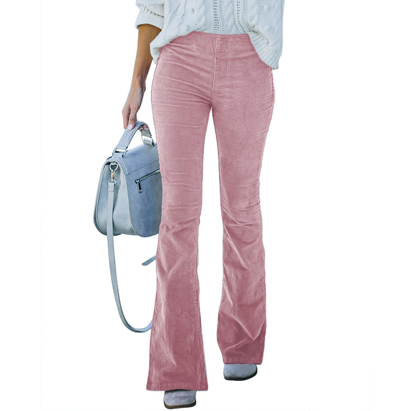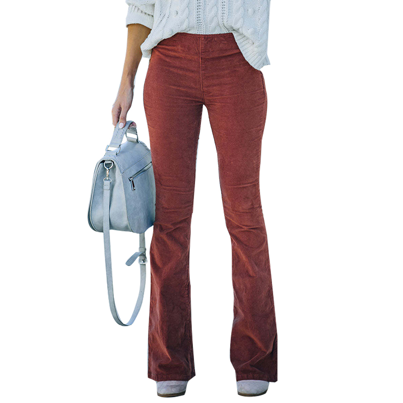 | Womens High Waist Corduroy Trousers Ladies Casual Solid Skinny Flared Long Pants Product Details