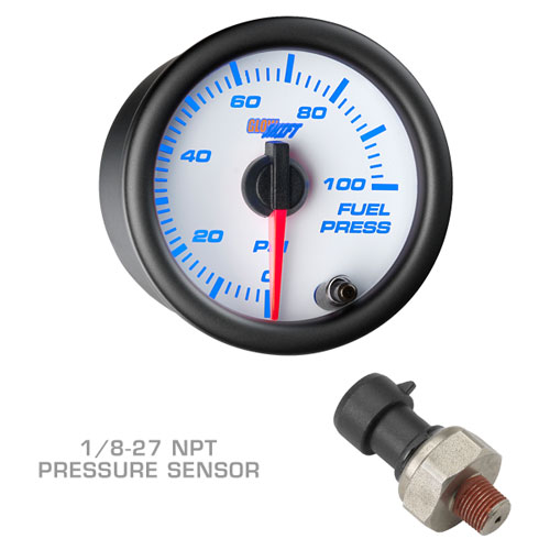GlowShifts White 7 Color Gauge Series features a white gauge face, magnified clear lens and illuminated red needle that sweeps 270°. Each analog gauge is equipped with stepper motor technology creating a combination of accurate readings and extremely smooth needle movement. Ultra-bright LED solid color modes include Blue, Green, Red, Teal, Yellow, Purple and White. With GlowShifts 7 color LED through dial lighting system you can select and change the color of your gauge display by simply pressing the button located on the front of the gauge.
