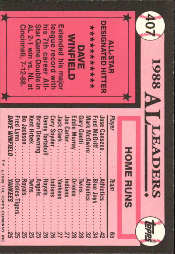 1989 Topps Tiffany #407 Dave Winfield AS - NM-MT