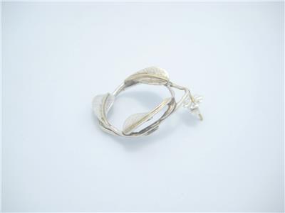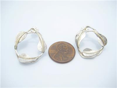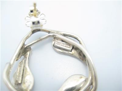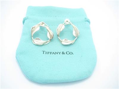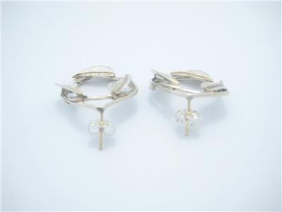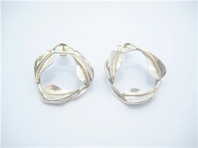 Tiffany & Co. Sterling Silver & Gold Round Leaf Pattern Stud Earrings - Pouch