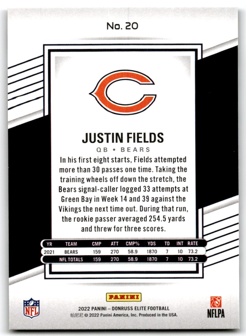 2022 Donruss Elite 20 Justin Fields