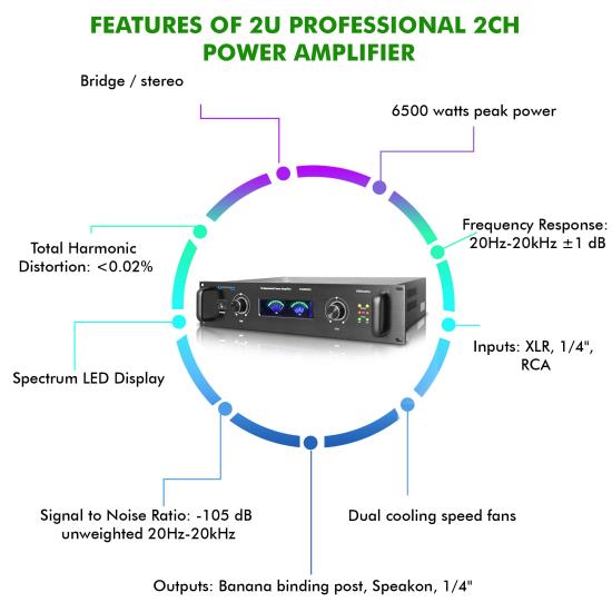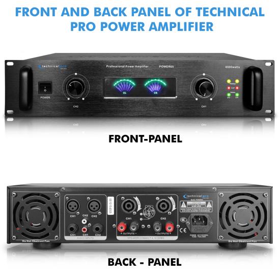 Technical Pro Professional Portable PA System, 2 Channel Digital Stereo Power Amplifier, 6000 Watts Power Audio Amp, for Home Speaker Systems, Inputs: XLR, 1/4'', RCA Bridge, stereo - Dual cooling Speed fans.