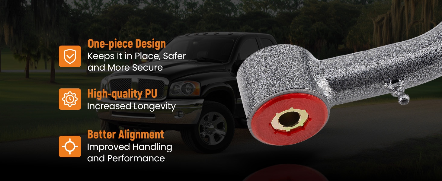 - One-piece poly bushing, effectively prevents bushings from falling out.