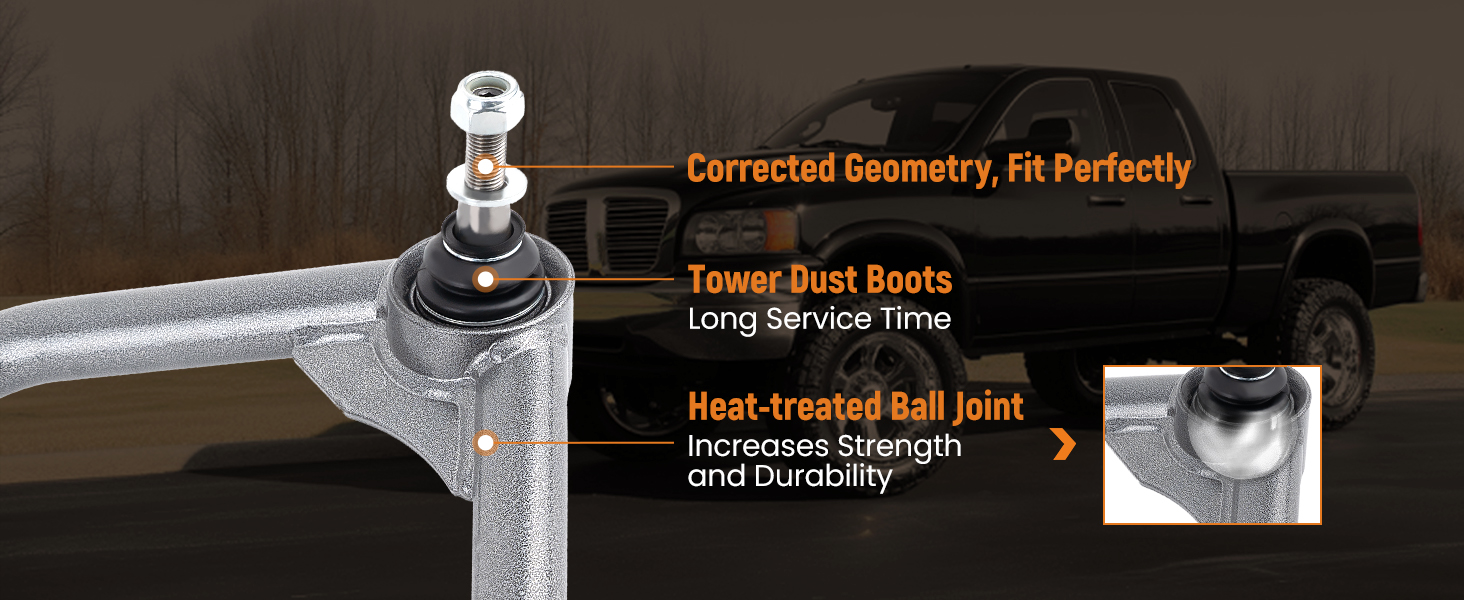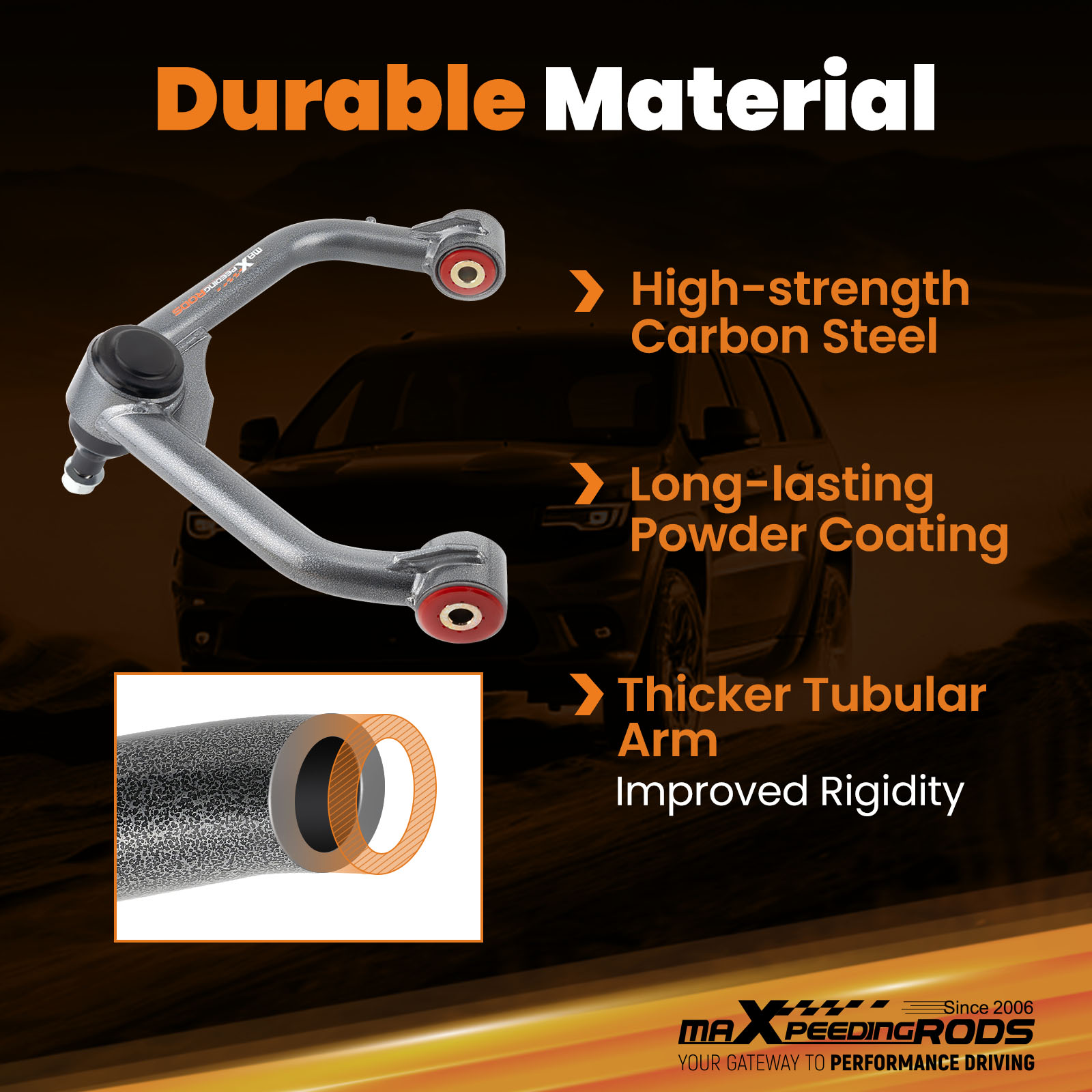 - The control arms with Pre-Assembled high-quality Ball Joint for quick and easy installation