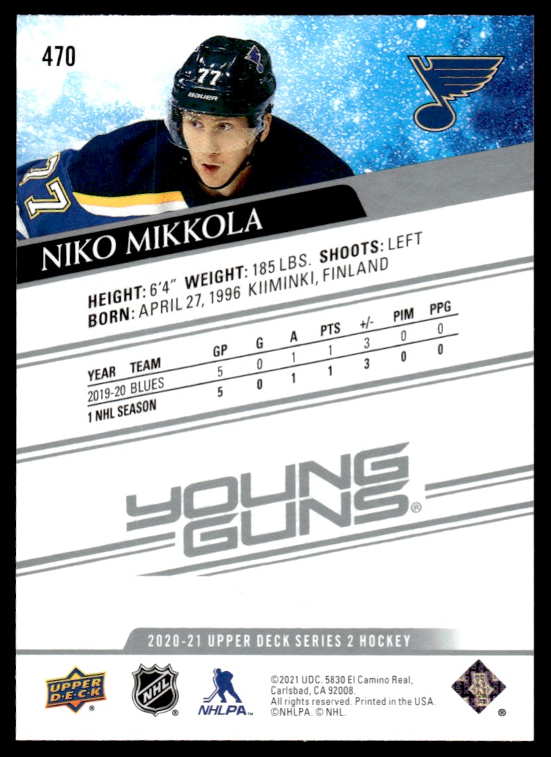 | 2020-21 UPPER DECK YOUNG GUNS ROOKIE RC Niko Mikkola | ||||||||||||