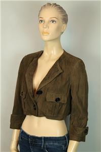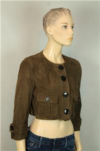 brown color soft goatskin leather cropped coat/ jacket with 3/4 long sleeves.