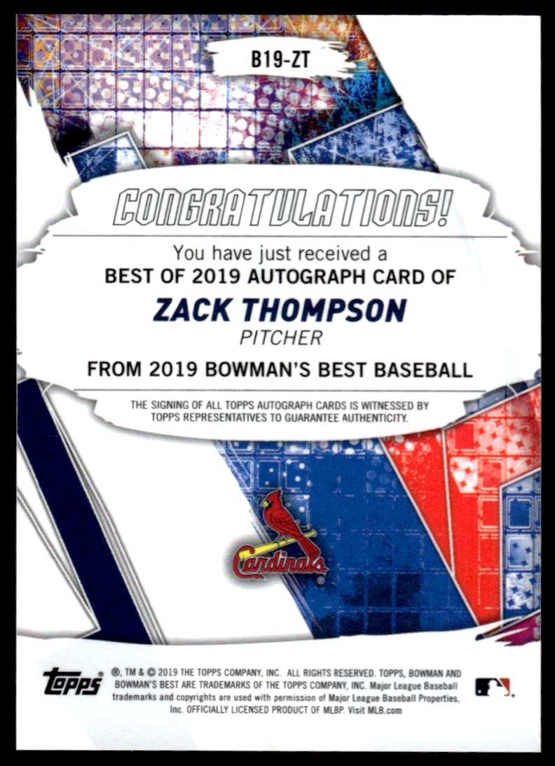 | 2019 Bowman's Best of 2019 Autographs B19-ZT Zack Thompson | ||||||||||||||||||