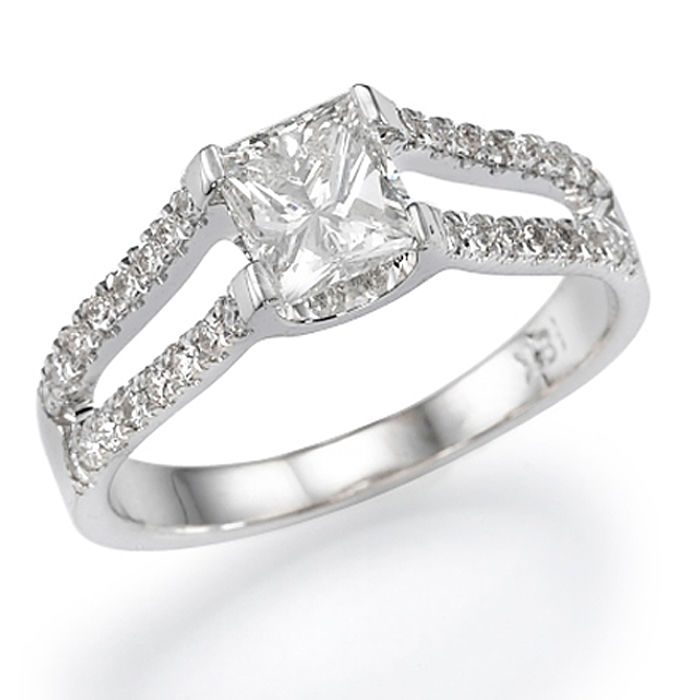 Diamond Ring Sidestones 0.65CTW (Center Stone 0.3ct) in 18K White Gold. Free Shipping - 30 Day Returns - Appraisal Certificate Included. This beautifully designed diamond ring has been meticulously crafted to perfection. Exclusively designed by the Brillianteers Diamond Studio guaranteeing its quality and excellence. Each stone is hand picked and inspected making sure that it has the ultimate sparkle and brilliance. Our unique classic designs will be sure to draw compliments anywhere you go and will be cherished for a lifetime.