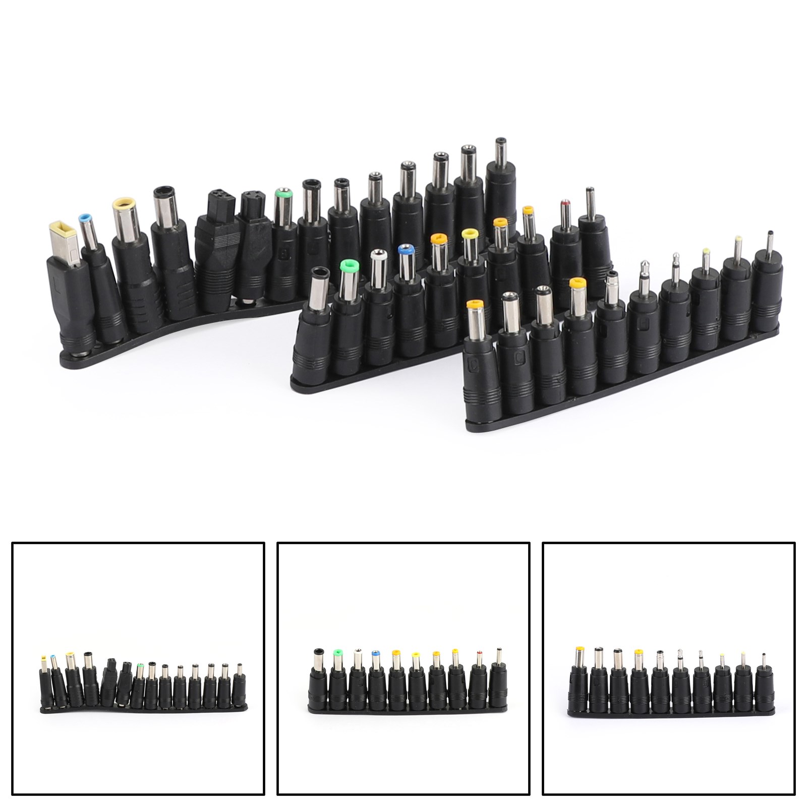 2. 5.5*2.1mm Female Base: Each connector tip can plug to a 5.5x2.1mm male connector, such as 5.5*2.1mm laptop power bank, 5.5*2.1mm AC adapter.