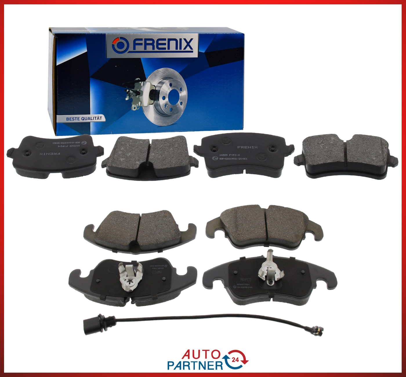 Kompletter Frenix-Bremsbelagsatz für die Vorder- und Hinterachse.
