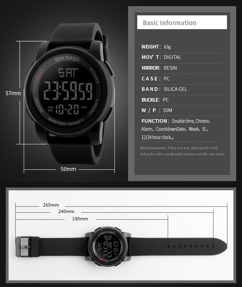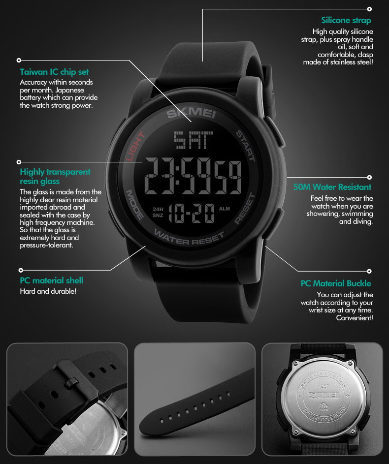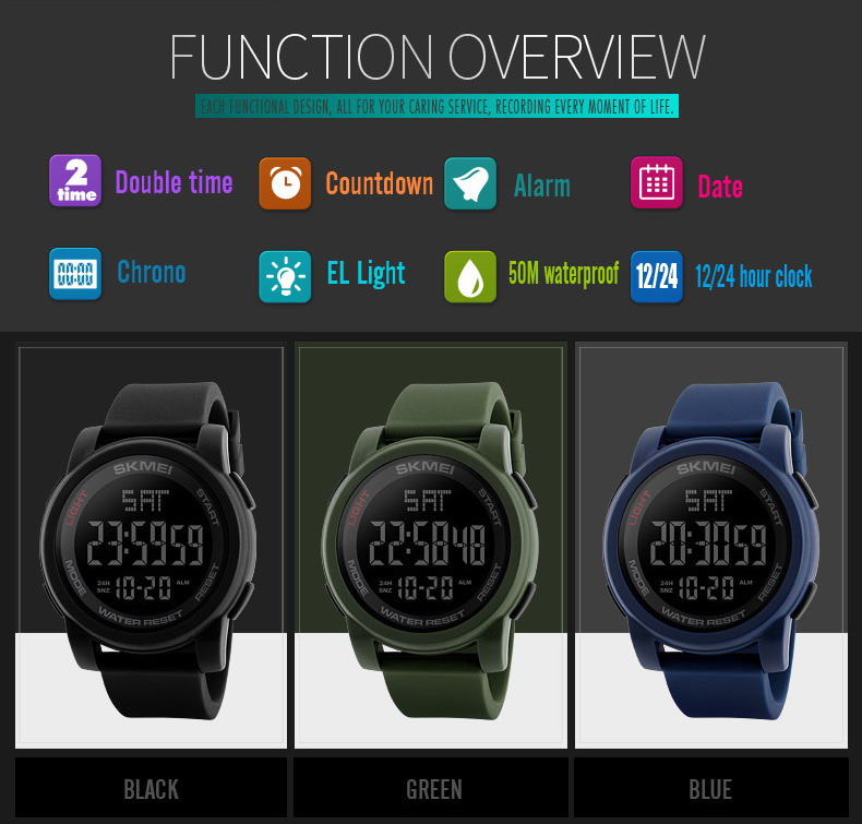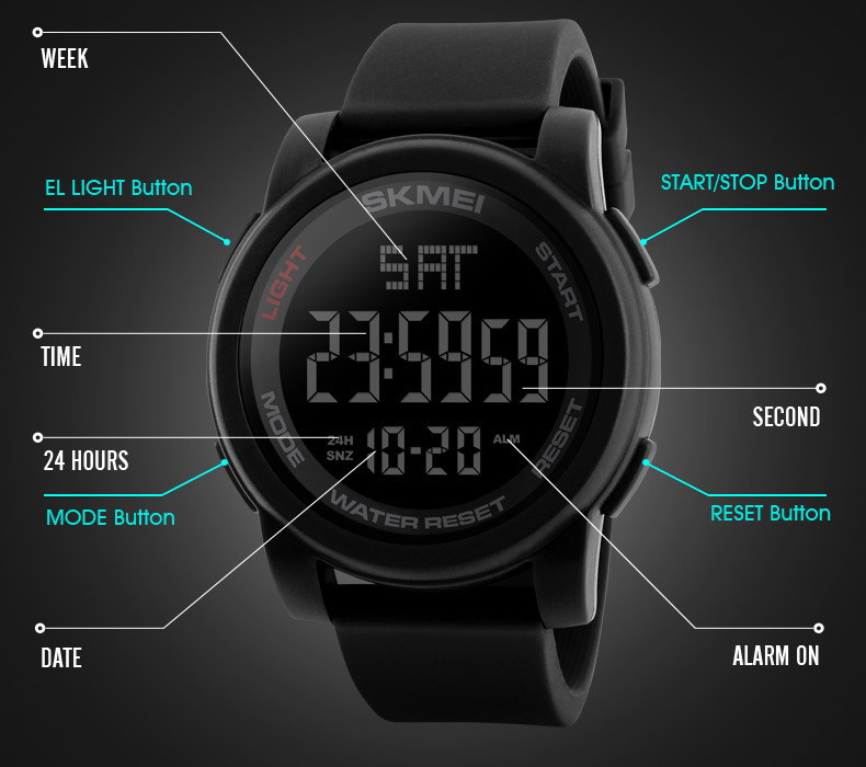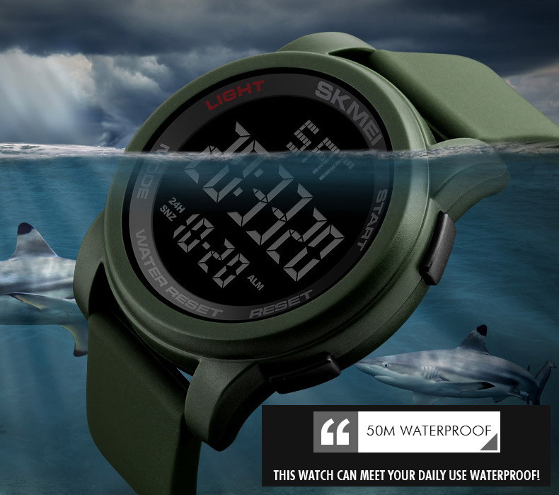 Water Resistant: 5ATM, Also for shower, swimming ,Diving.(Please Don't Press Any Key Underwater)
