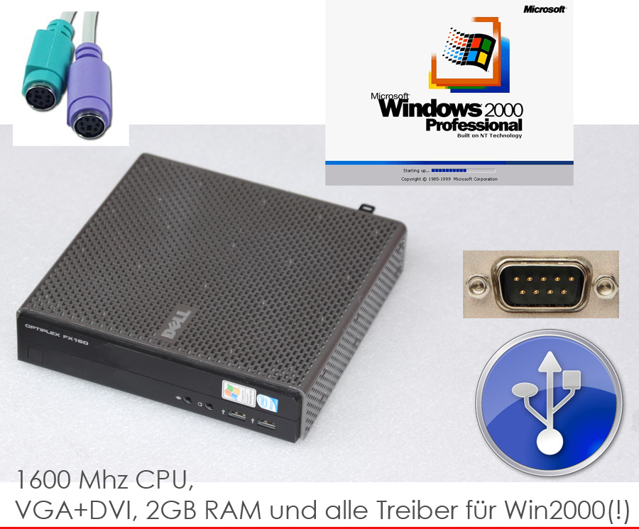 A Windows 2000 computer - a very small, silent and safe computer DellOptiPlex FX160,