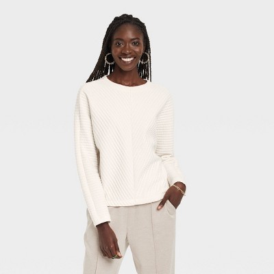 Spruce up your cool-weather closet with this Long-Sleeve Boat Neck Ottoman Top from A New Day?. This pullover ottoman top is made of soft, stretchy fabric with a regular fit and below-waist length for comfortable wear, breathability and coverage. Framed by a sleek boat neckline, it features allover ribbed detailing for charming texture and flair. Simply pair this ottoman top with jeans, cargo trousers or ankle pants to create a number of outfits. A New Day?: Style that goes wherever you do. Size: XXL. Color: Cream. Gender: female. Age Group: adult. Pattern: Solid. Material: Polyester.