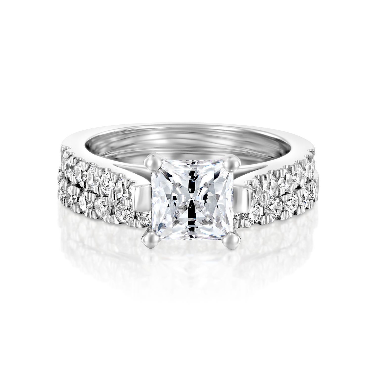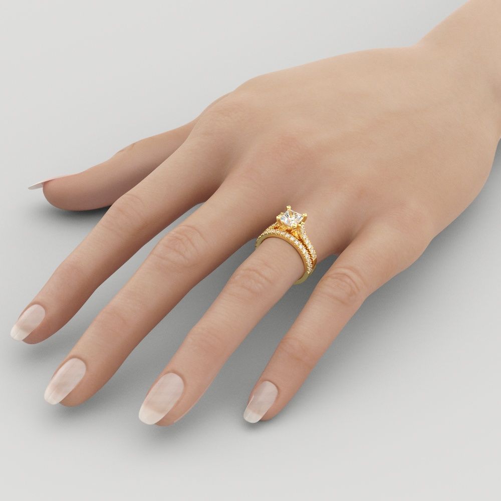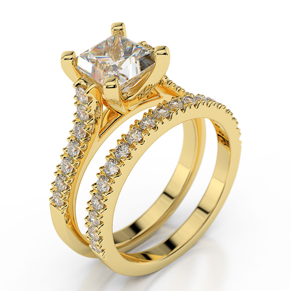 1.65 CT D/SI1 Beautiful Princess Cut Diamond Engagement Ring Set 14K Yellow Gold