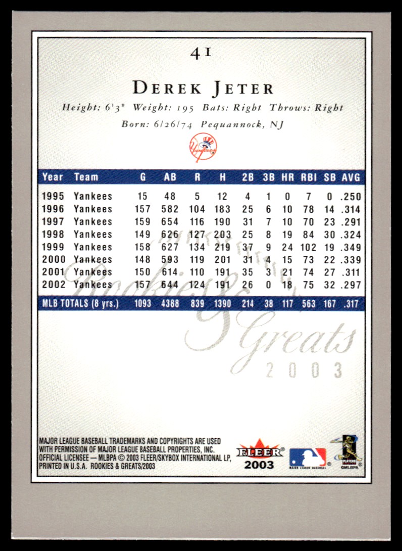 | 2003 Fleer Rookies & Greats 41 Derek Jeter | ||||||||||||||||