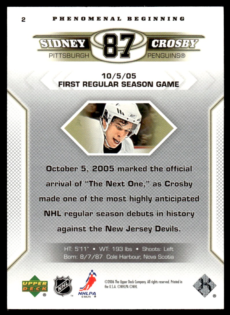 | 2005-06 Upper Deck Phenomenal Beginning 2 Sidney Crosby | ||||||||||||||||