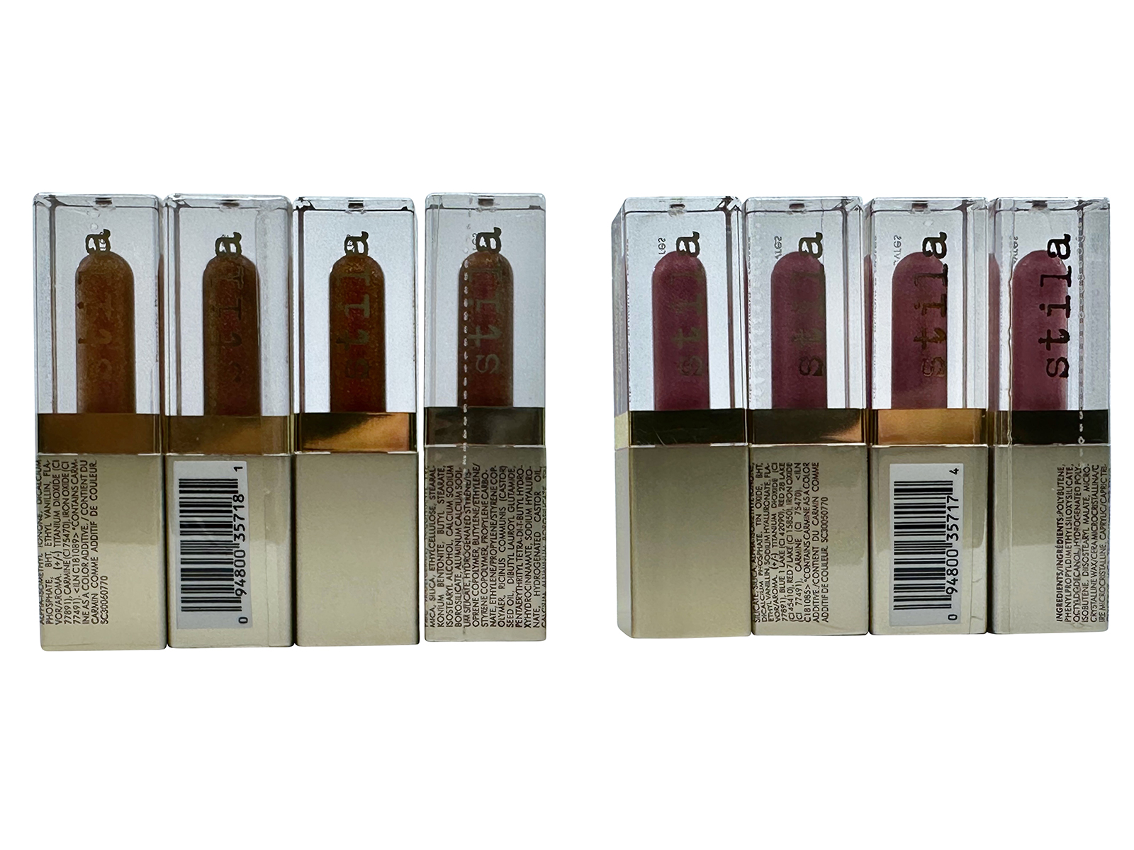 Stila Beauty Boss Lip Gloss Synergy & Elevator Pitch add shine and color to the lips, while providing moisture and comfort. The key ingredients of this product include a blend of emollients and moisturizers, along with pigments and other ingredients that provide color and shine. How to use: Apply onto lips or apply over lipstick. This is a set of 8. You receive two travel glosses of each color.