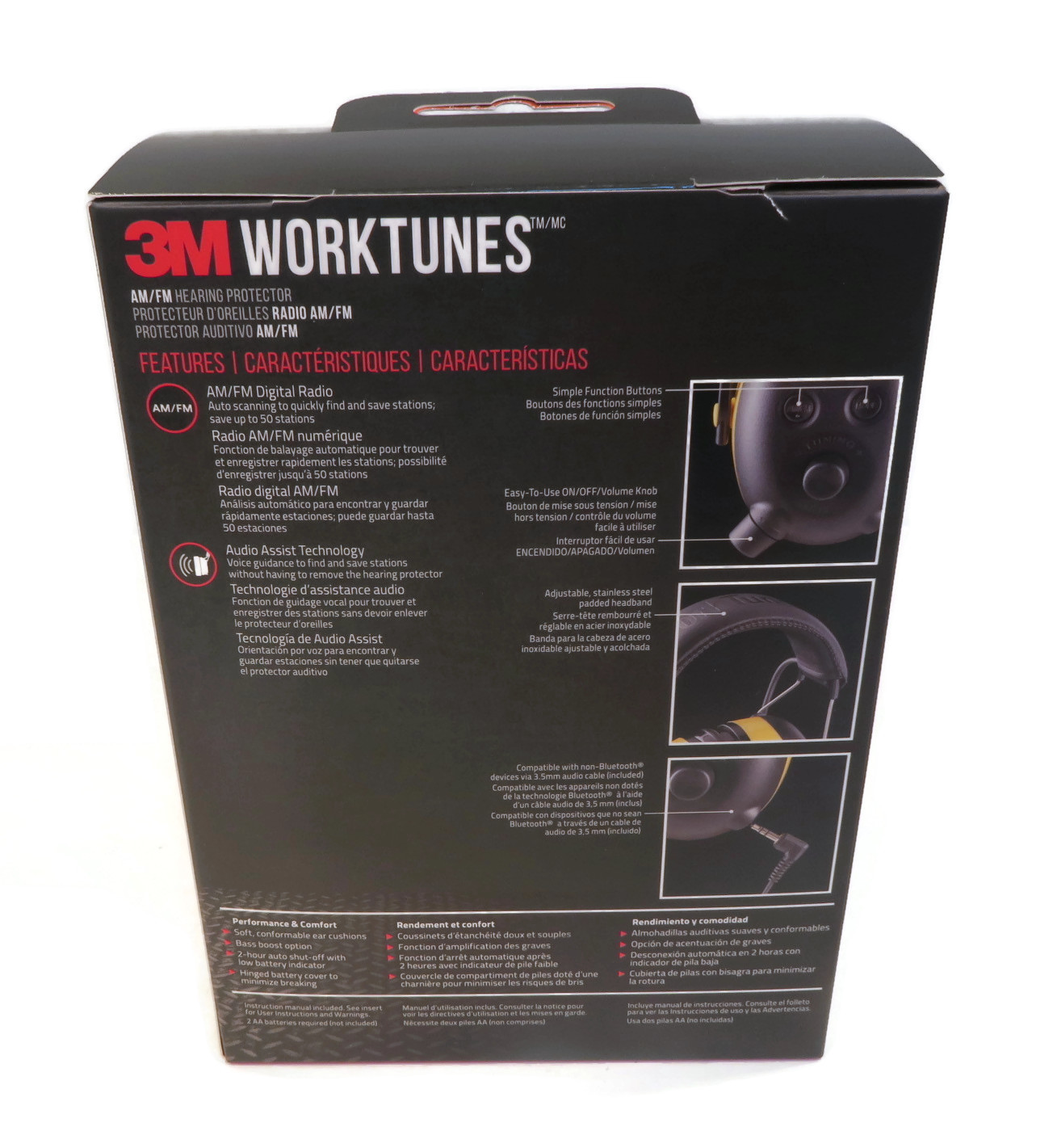 • Features - AM/FM radio performance and bass boost option. Audio Assist Technology provides set-up guidance. Can program up to 50 AM/FM radio stations or Auto-scan through stations. Auditory low battery sound. Easy-to-use controls. Automatic shut-off. Lightweight and low profile. Soft, comfortable ear cushions and padded headband.