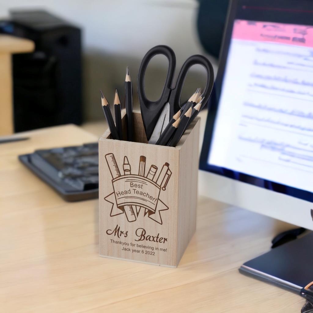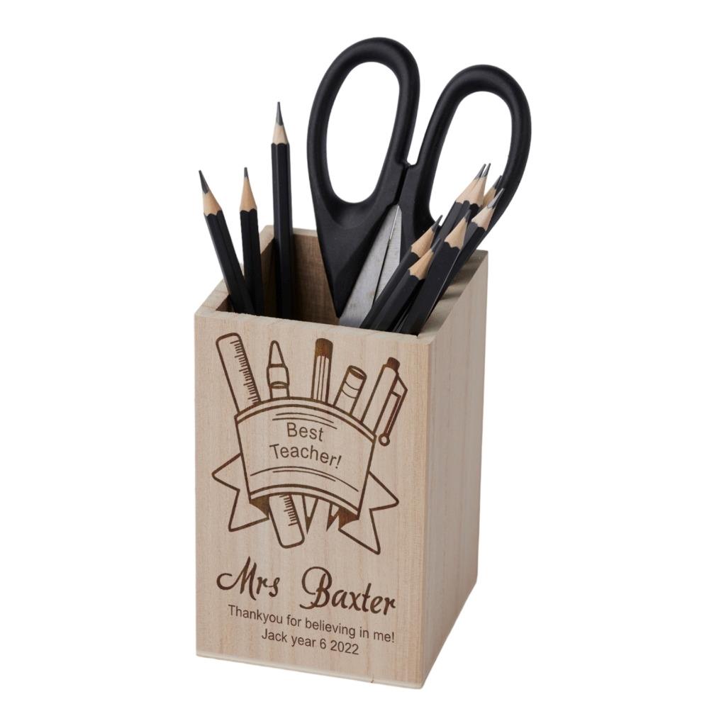 Stationary Holder Personalised Wooden Desk Tidy Gift For Best Teacher