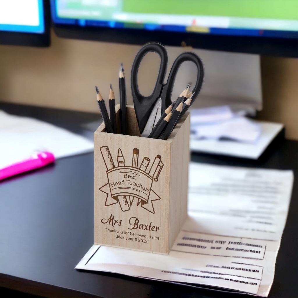 Stationary Holder Personalised Wooden Desk Tidy Gift For Best Teacher DSK-8