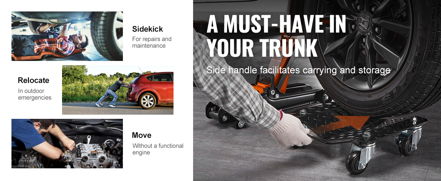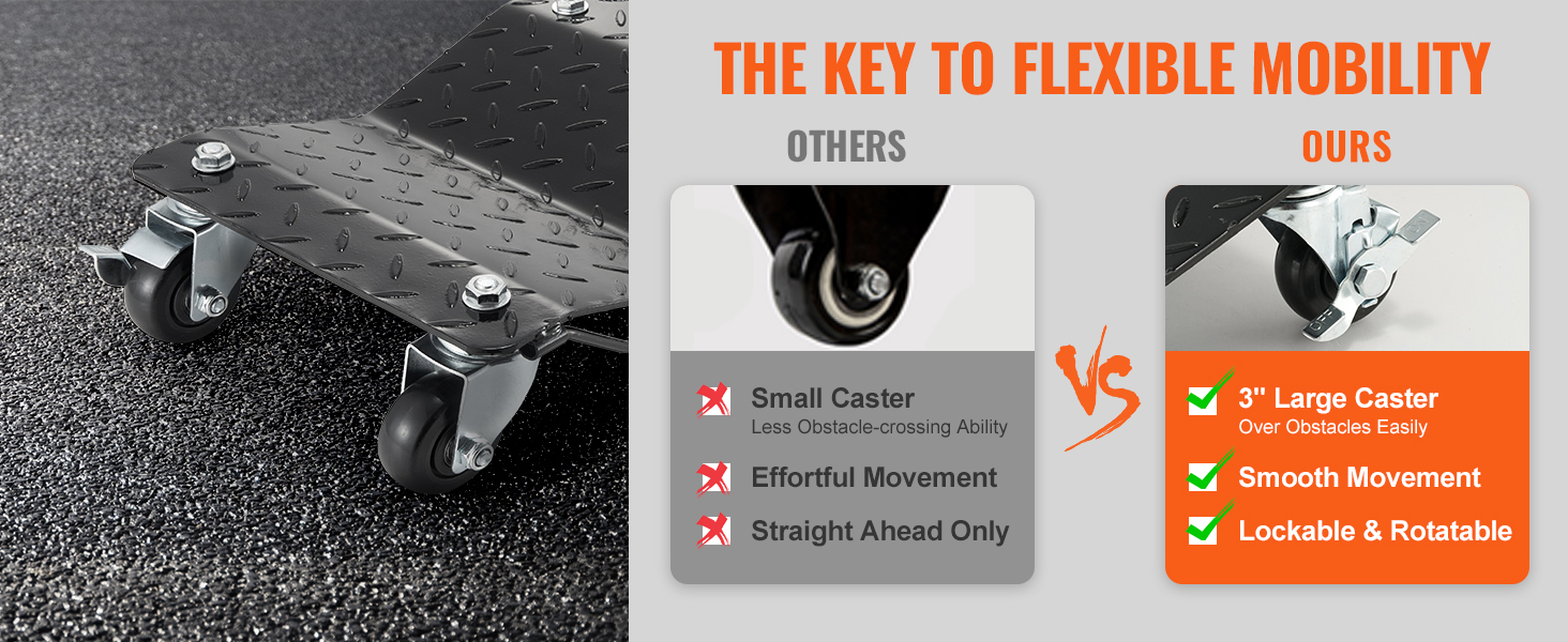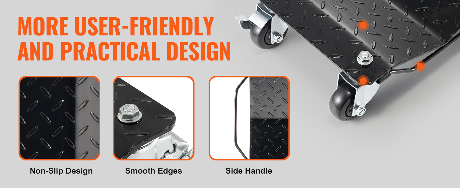 Fabricada con gruesos paneles de acero, la plataforma rodante para automóvil puede soportar sin esfuerzo una carga de hasta 0,7 T, lo que proporciona una capacidad de carga total de 3 T (4 piezas). Se mantiene robusto e intacto, incluso cuando soporta SUV pesados.