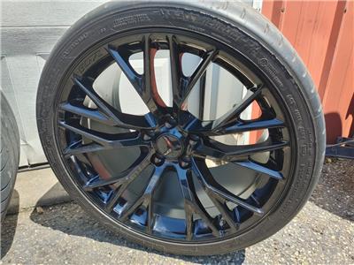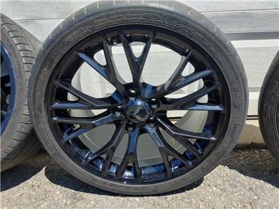 You are viewing a set of wheels & tires removed from a 2018 Chevrolet Corvette Z06 with RPO wheel code Q6U. These OEM Y spoke “Black” powder coated wheels show minor scratching/blemishes but are in overall very good condition. The tires have a tread depth of 6/32” . See notes section below for more details. Item is an OEM used part in good condition and is covered by our 30 day parts guarantee.