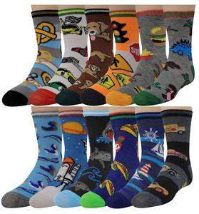 - 12 in 1 pack-Each packing including 12 pairs of Boys Novelty Crew Socks.
