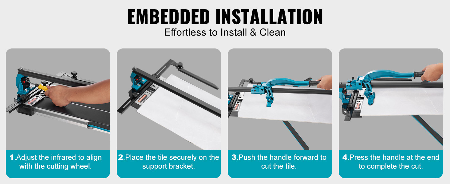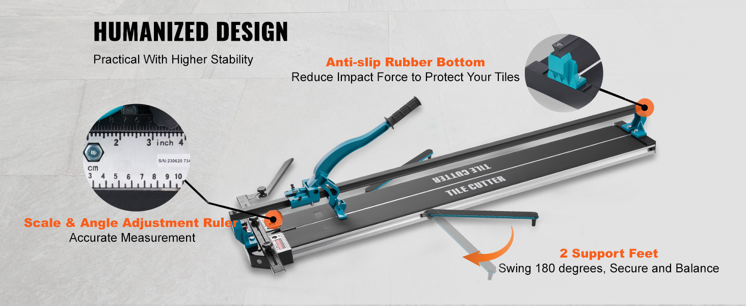 Estructura resistente: La rueda de corte está diseñada para ofrecer una gran dureza y estabilidad, permitiendo marcar y cortar azulejos con facilidad. Este equipo incluye rieles de acero con tratamiento anticorrosión, rodamientos de precisión y una base de aluminio robusta, proporcionando confiabilidad para proyectos de instalación de baldosas y renovaciones en el hogar.