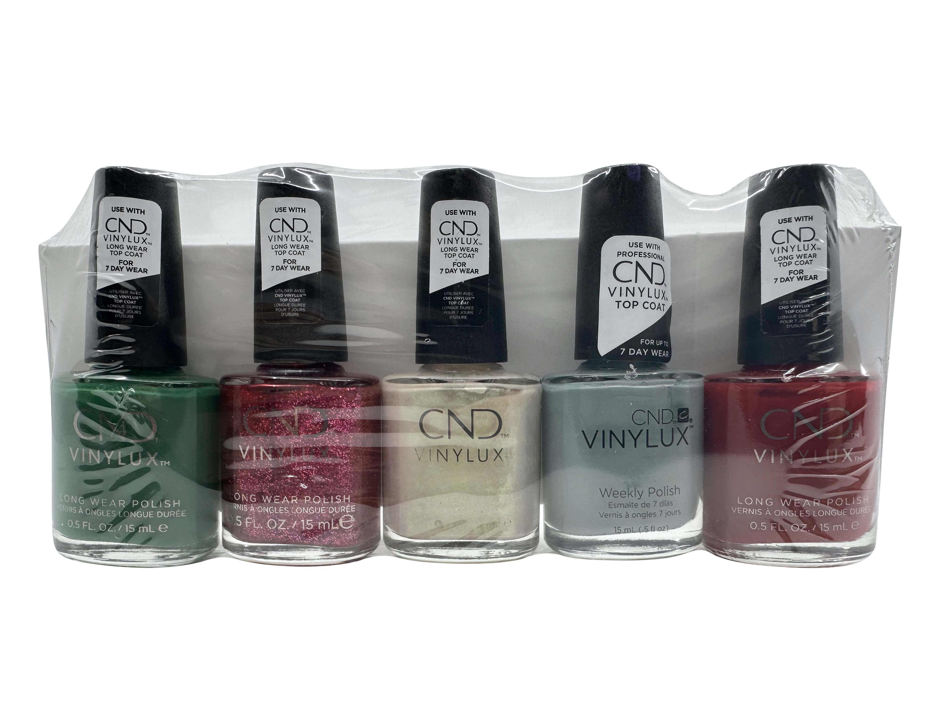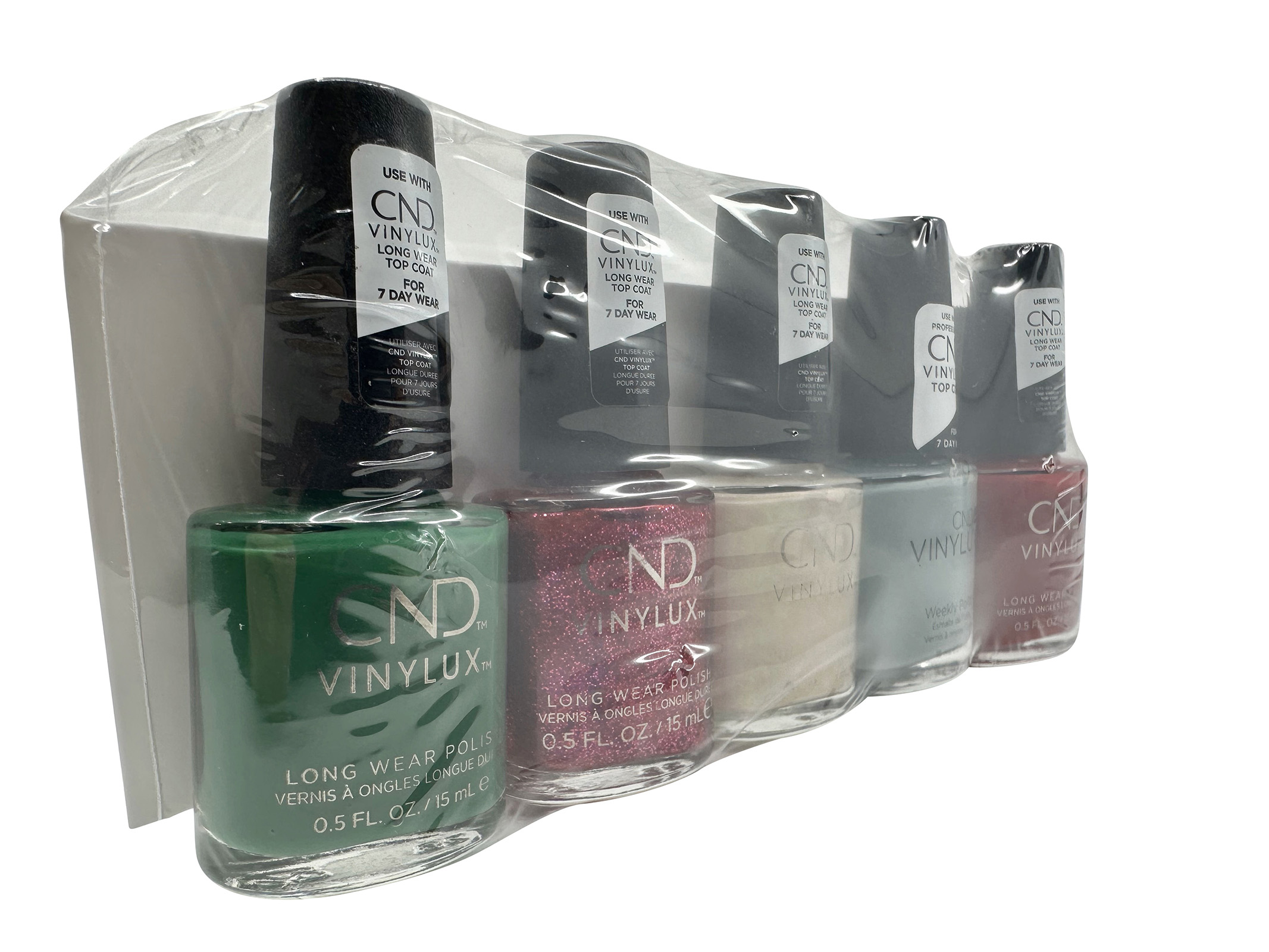 CND Vinylux Nail Polish Variety Pack Set offers you a variety of high shine, long wear colors to choose from, so that your manicure always looks perfect. This is a set of 5 nail polishes. Included are colors Palm Deco, Butterfly Queen, Lovely Quartz, Mystic Slate, and Rose Brocade. CND Vinylux Nail Polish is a cutting edge formula for those who want long wear nail polish with top shine. This nail polish formula lasts up to 7 days. Goes on flawless, streak free finish, and enhanced shine. This formula is made Formaldehyde Free, Tolune Free, Dibutyl and Phthalate Free. Comes in 14 shades. Chip resistant for up to 5 days. How to use: Pre treat nails with cuticle oil and clean them off well. Apply two thin coats of the Vinylux Nail Polish. Complete Vinylux Top Coat. This is a high pigment, full coverage nail polish. Protects nails and leaves them looking flawless.