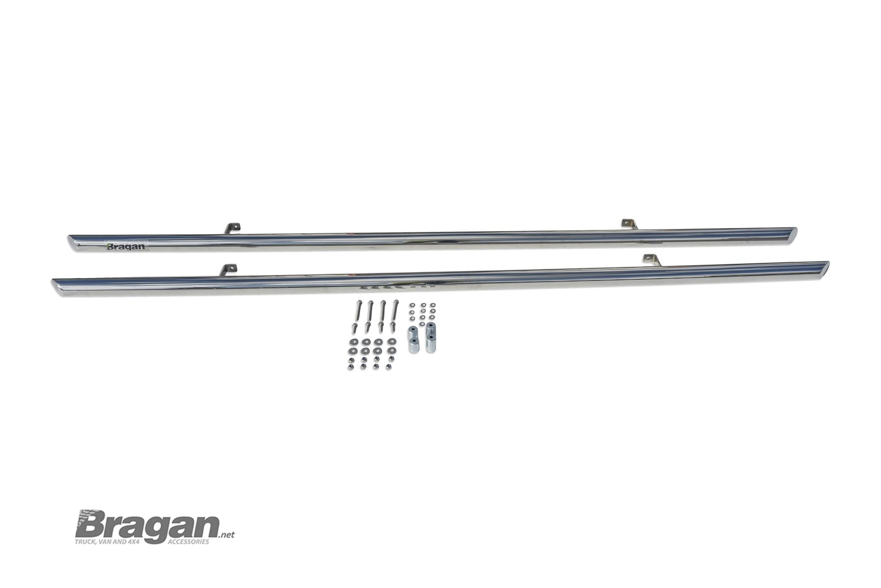 These bars are 2 inch / 50 mm diameter and bolt neatly straight to your van. All necessary bolts and brackets are included. These are a high finish SUS 304 grade stainless steel side bar, hand polished to a mirror like finish.
