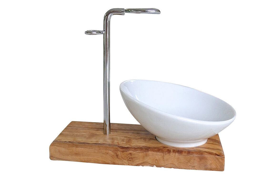Sofort Kauf Rasierpinselhalter KLASSIK PLUS aus OLIVENHOLZ mit Porzellanschale schräg 10 cm