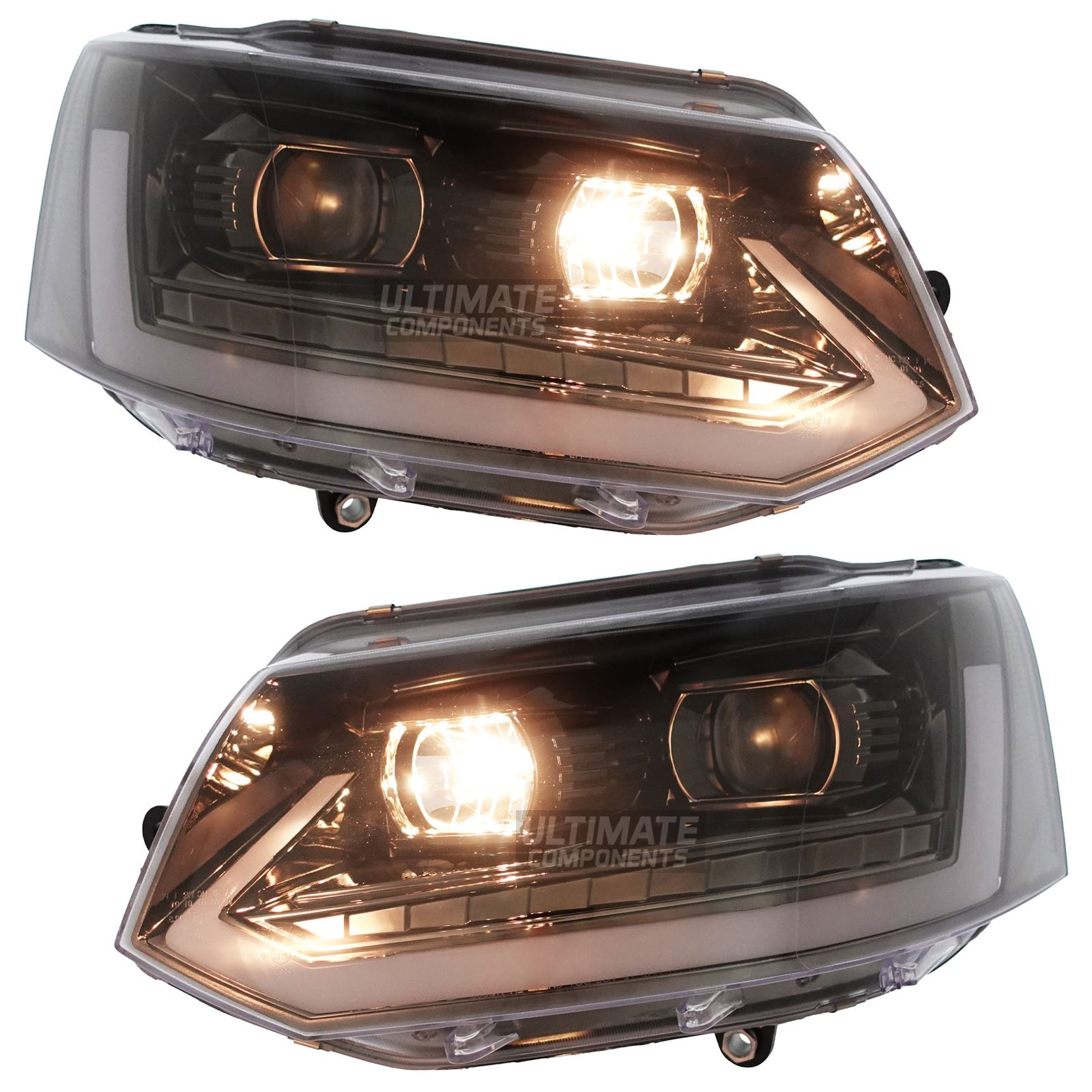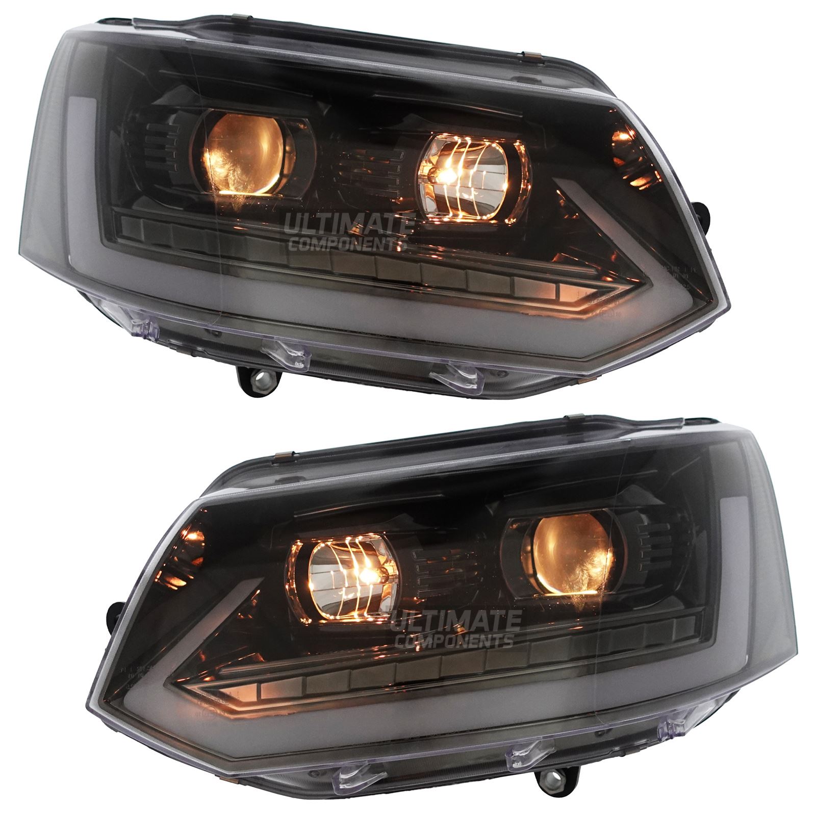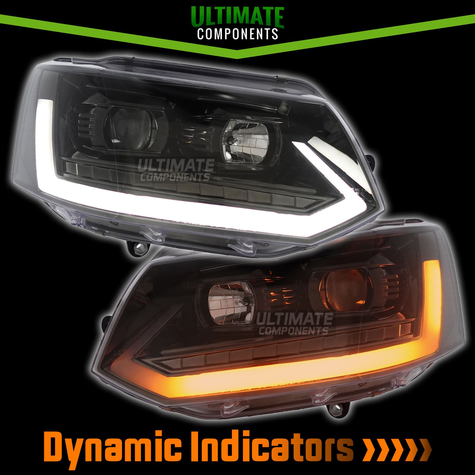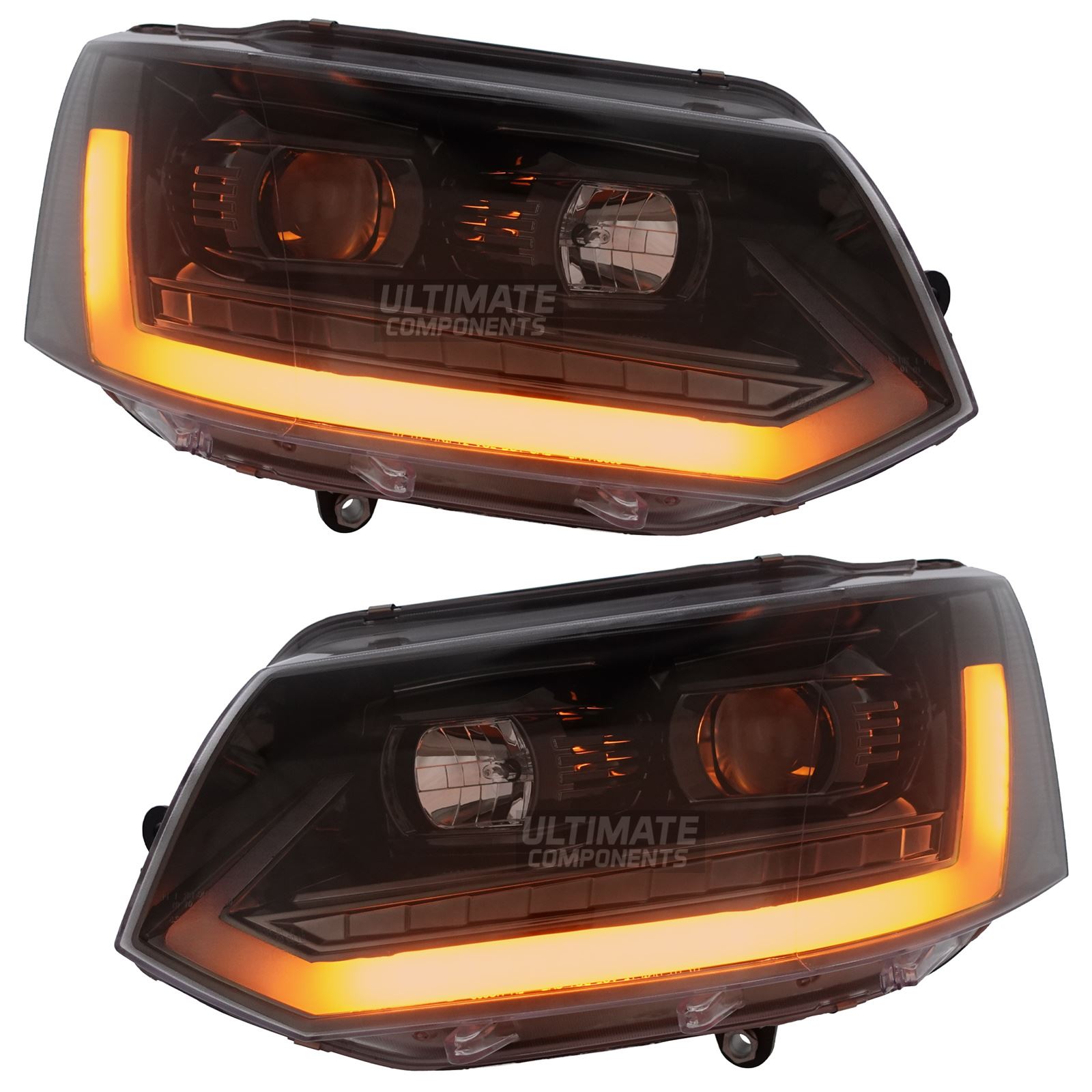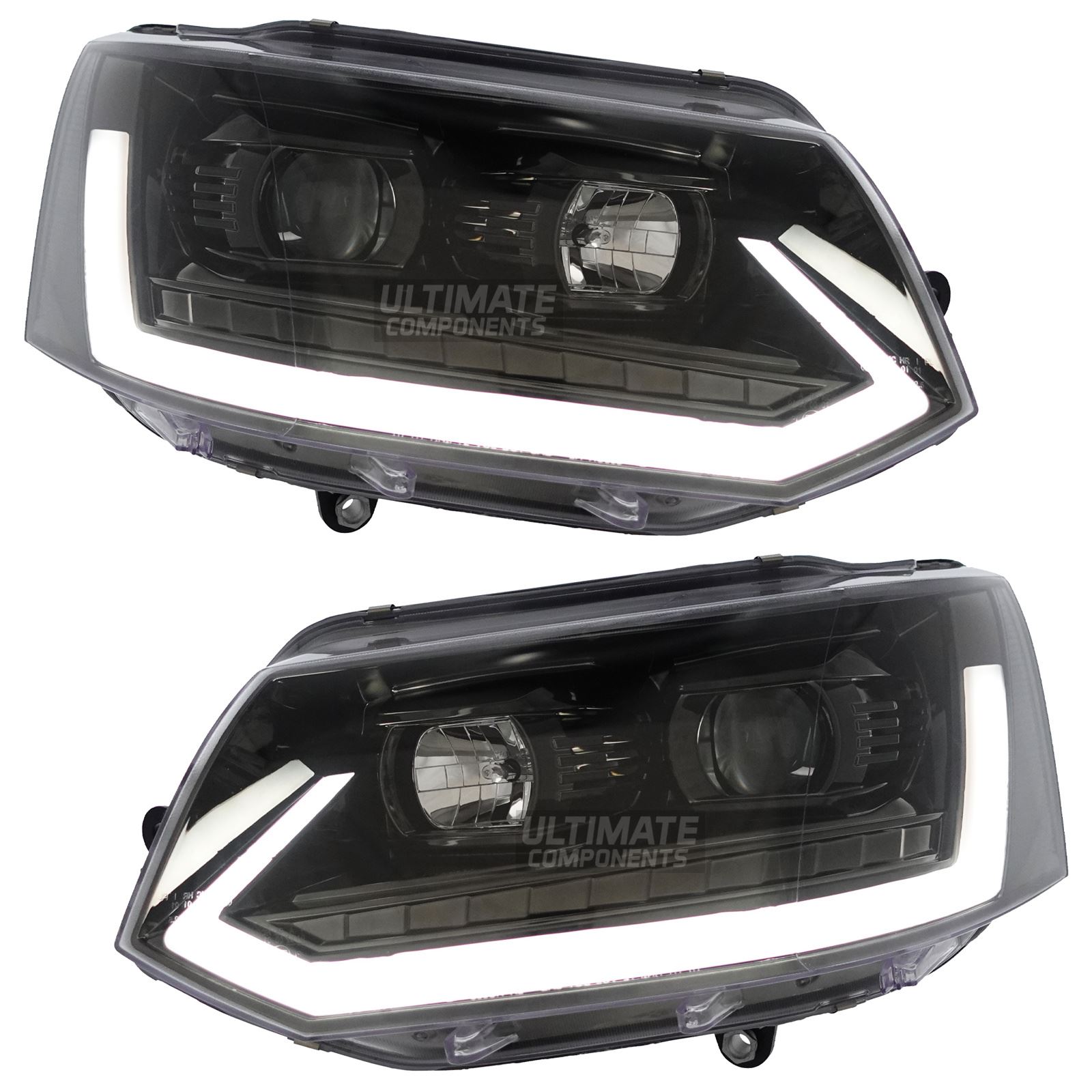 VW Transporter T5.1 2010-2015 LED DRL Gloss Black Headlights Dynamic Flashers