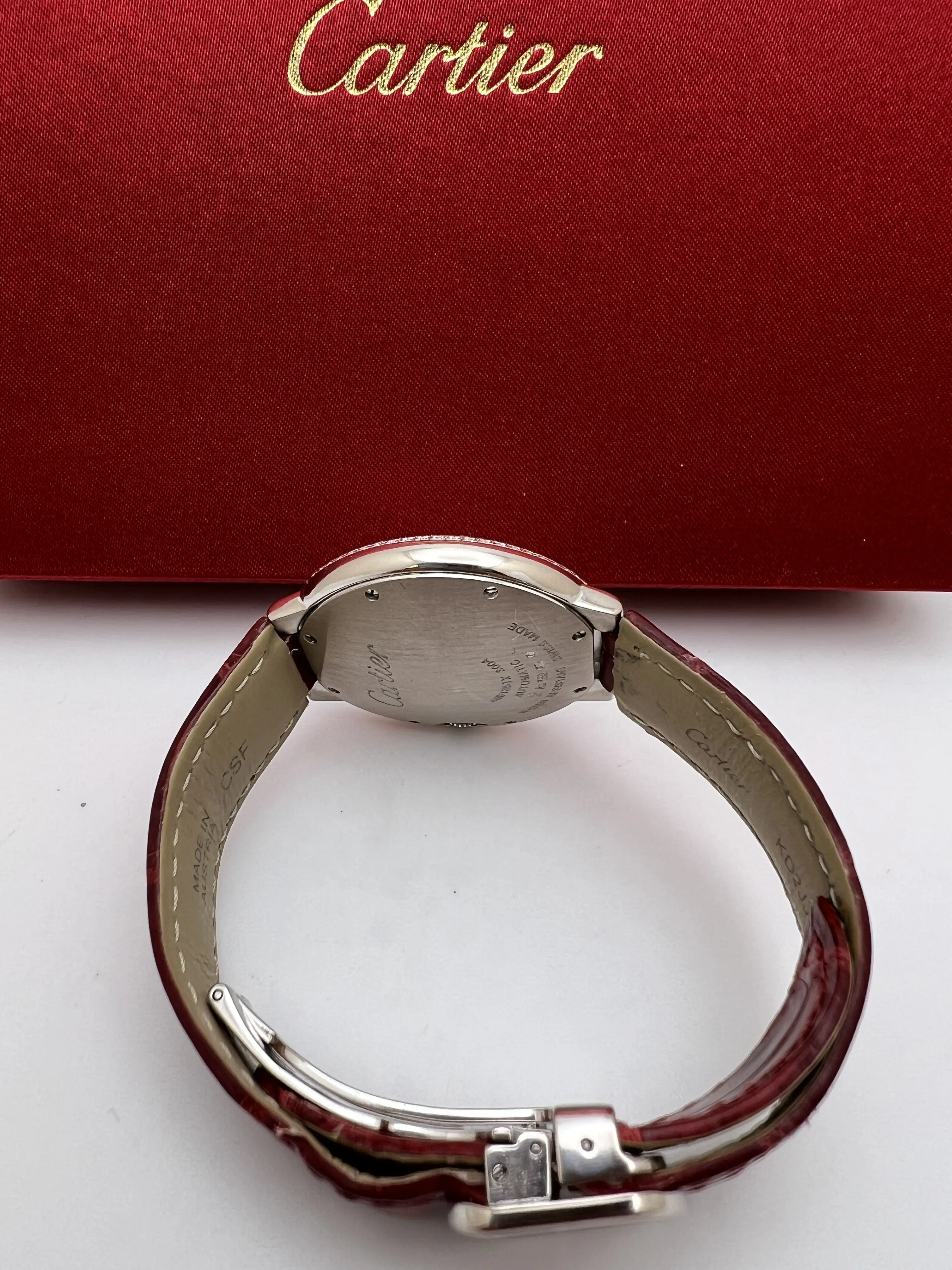 Cartier Ballon Bleu WE900651 36mm 18K White Gold Diamond Bezel Leather Strap B&P