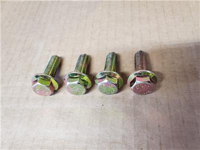 Here are the front or rear sway bar bushing bracket mounting bolts that are high quality Class 10.9 (metric grade 8 equivalent) hardened flange bolts plated in yellow zinc. These bolts hold the sway bar bushing brackets either to the vehicle frame in the front or the rear axle housing in the rear. This was used on 97-06 Jeep Wrangler TJ. This is a direct OEM replacement. This listing is for 4 bolts, if you are wanting bolts for both the front and rear sway bar bushing brackets, you would need 2 sets. Thanks for looking and feel free to ask any questions.