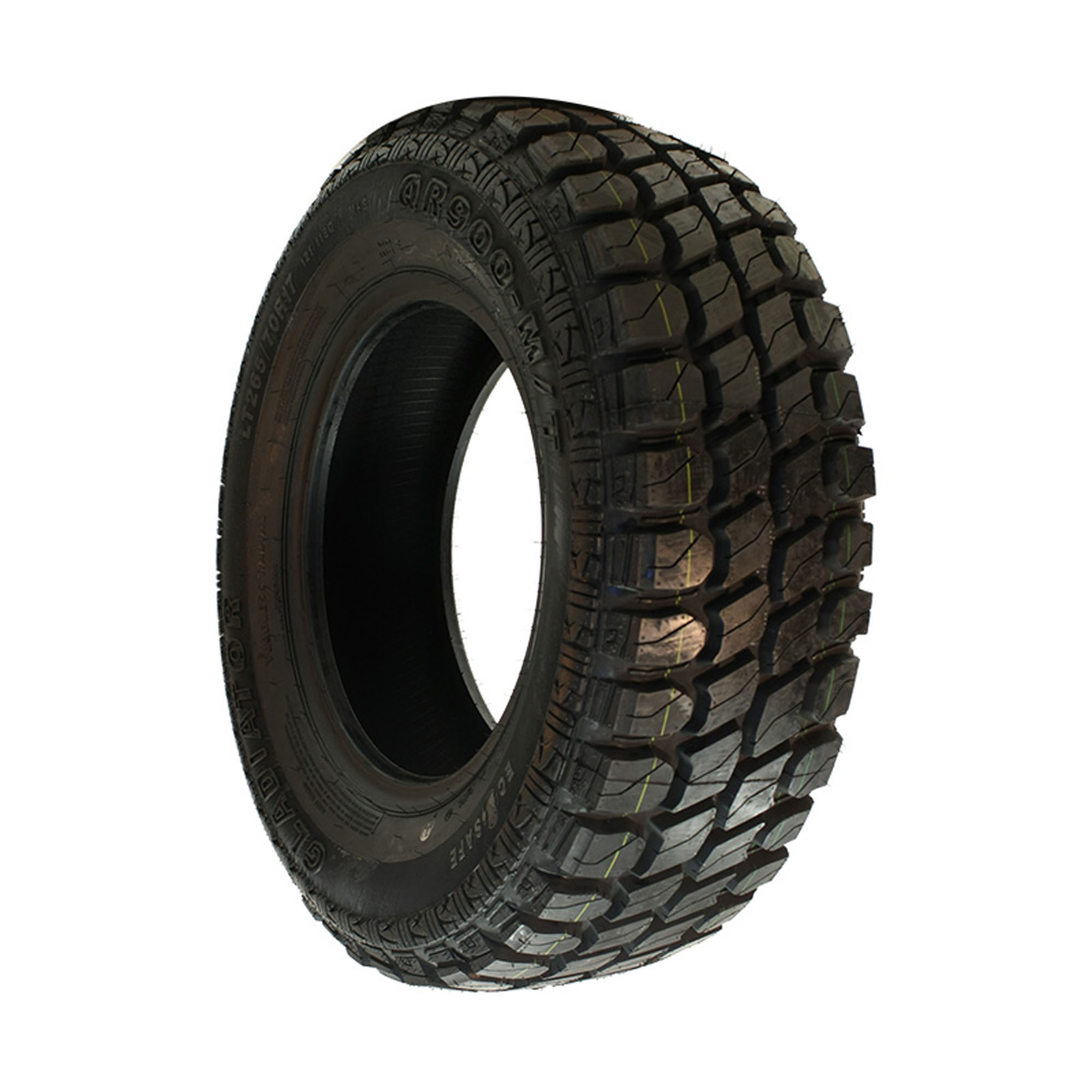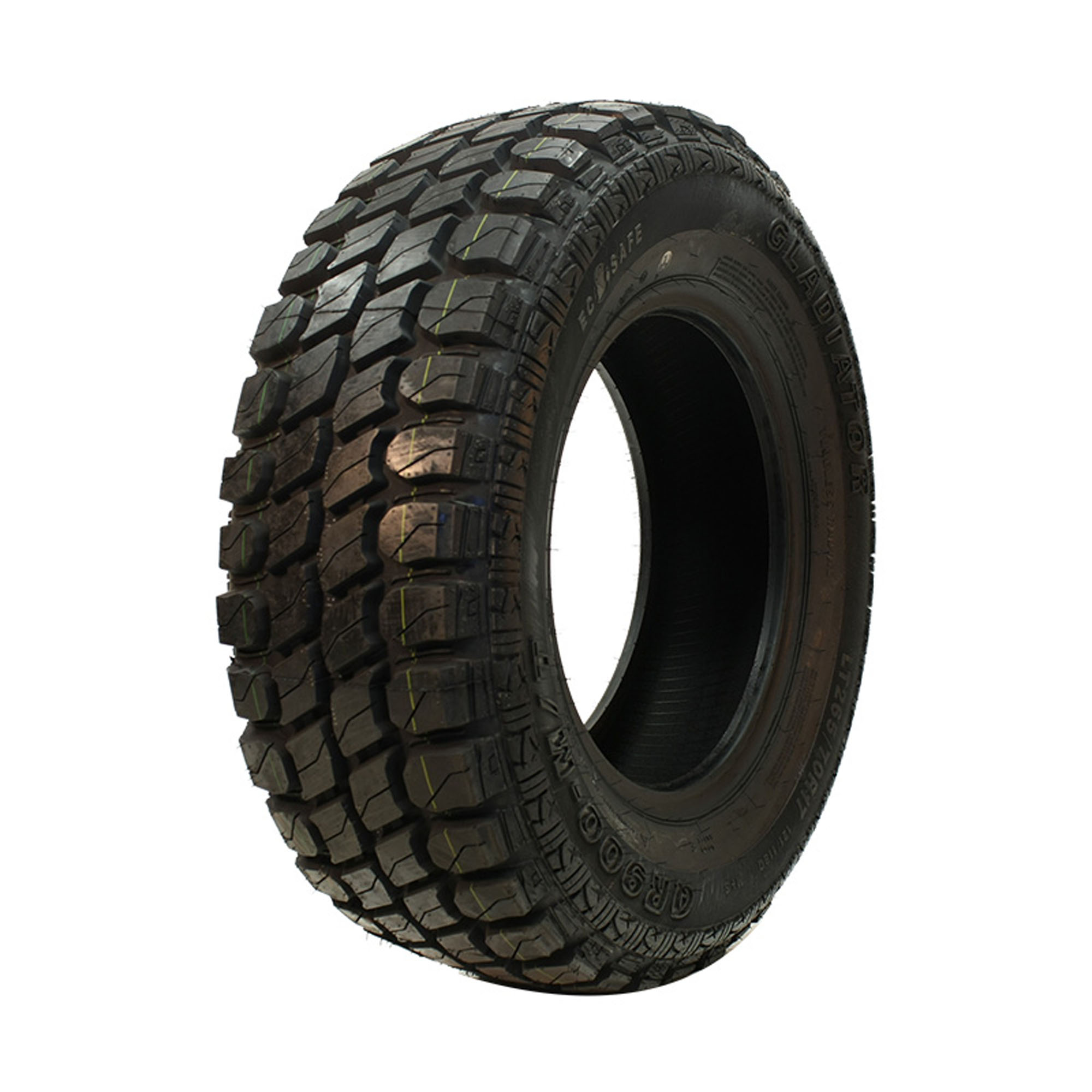 Gladiator's QR900-MT is a mud terrain tire that's designed for use on Jeeps, light trucks, and SUVs. An aggressive tread pattern boosts traction and performance in mud, dirt, and other off-road terrains, and the QR900-MT's steel belted construction boosts strength and durability for a higher load carrying capacity and longer tread life.
