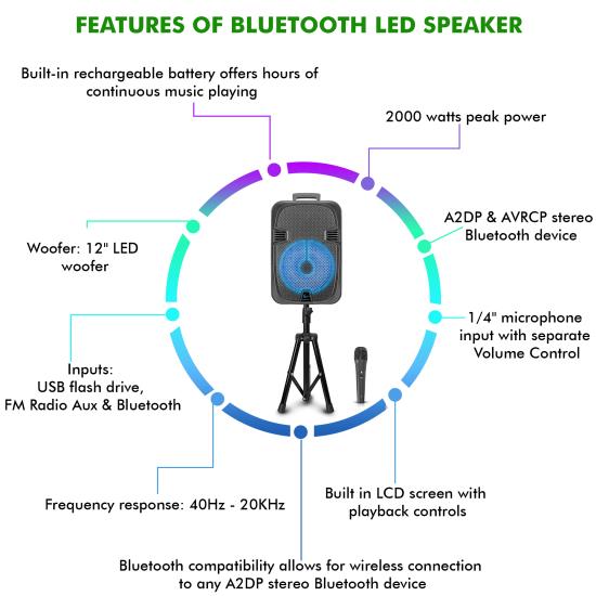 Technical Pro Rechargeable 12 Inch Bluetooth LED Speaker, FM Radio, LED Woofer,