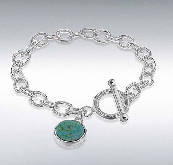 Sterling Silver Ladies Turquoise Charm Belcher T.Bar Bracelet 7.50 "