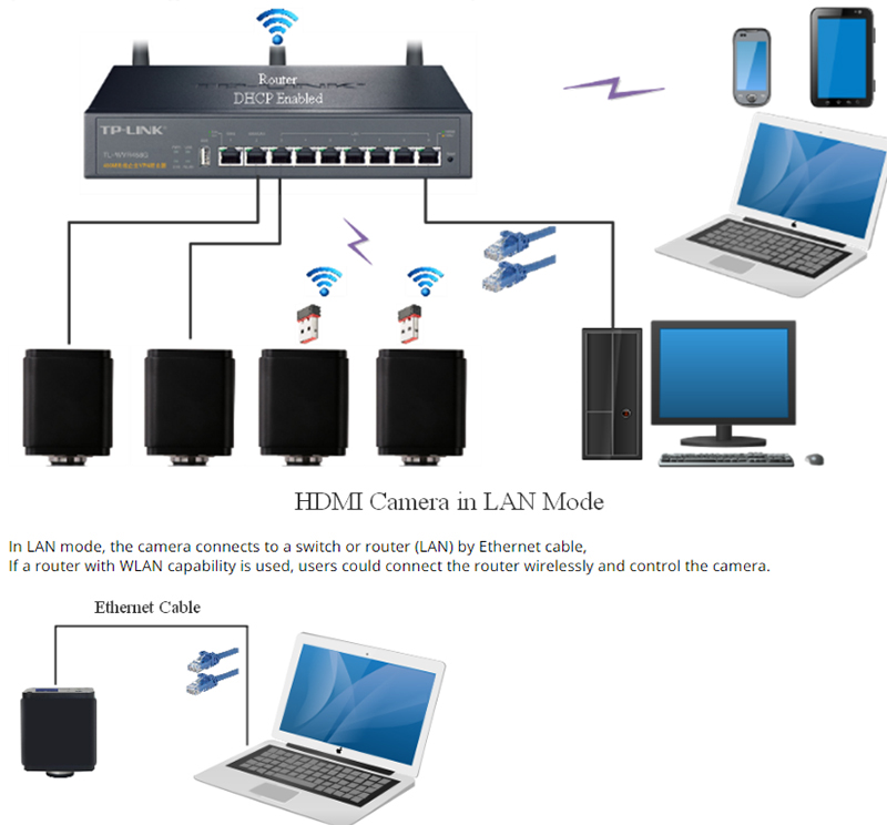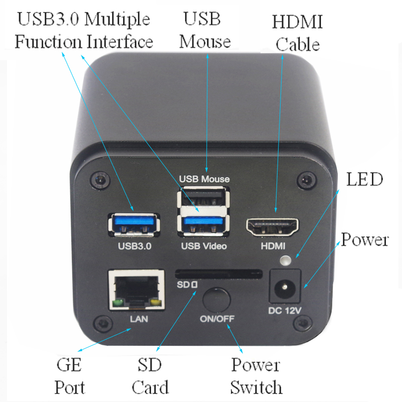 The camera uses a standard C-mount interface for maximum compatibility with various microscopy-systems. It can be used as a stand-alone recorder when used with an HDMI monitor or television, or live-streamed to a PC via USB or Gigabit Ethernet (GE) for image-capture and video-recording.