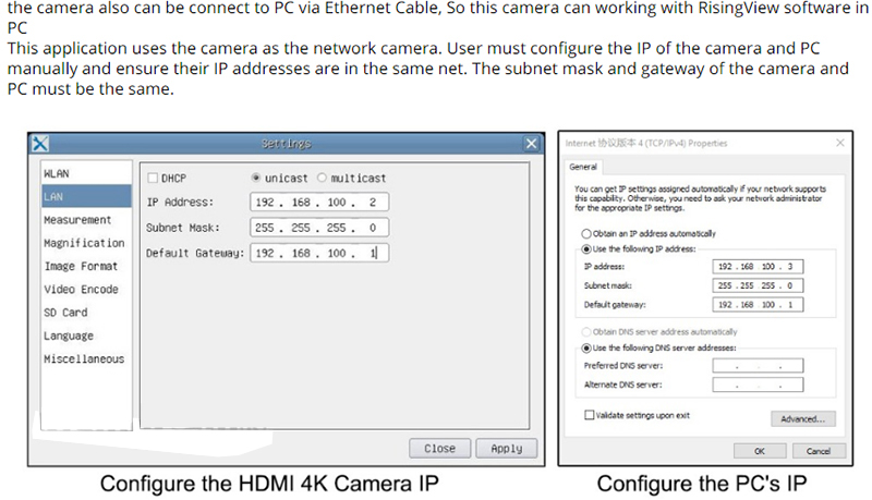 - RisingView application for the PC output via USB3.0 or GE port