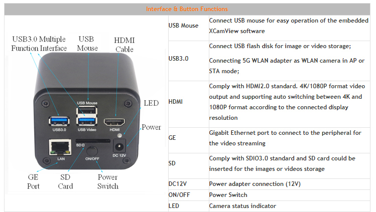 - 2. Camera Working with Computer via USB3.0 cable,