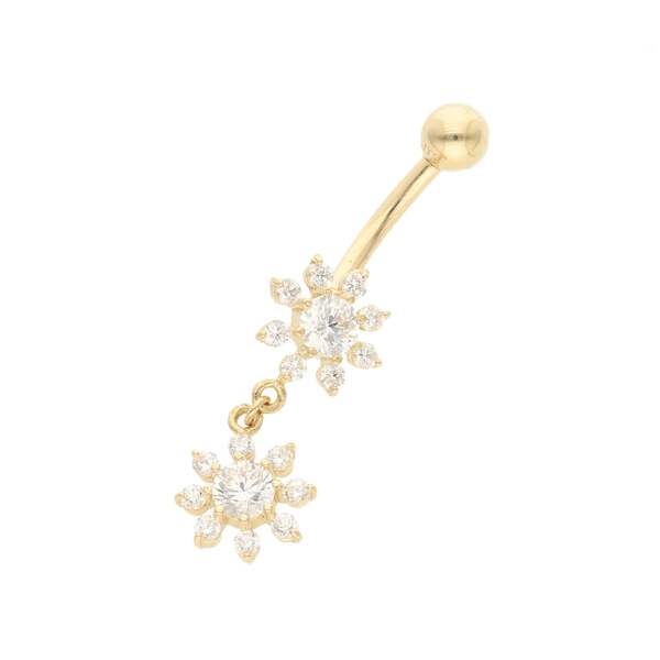 14 Karat Gold & CZ Double flower Belly Piercing