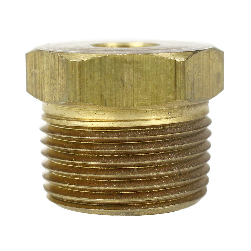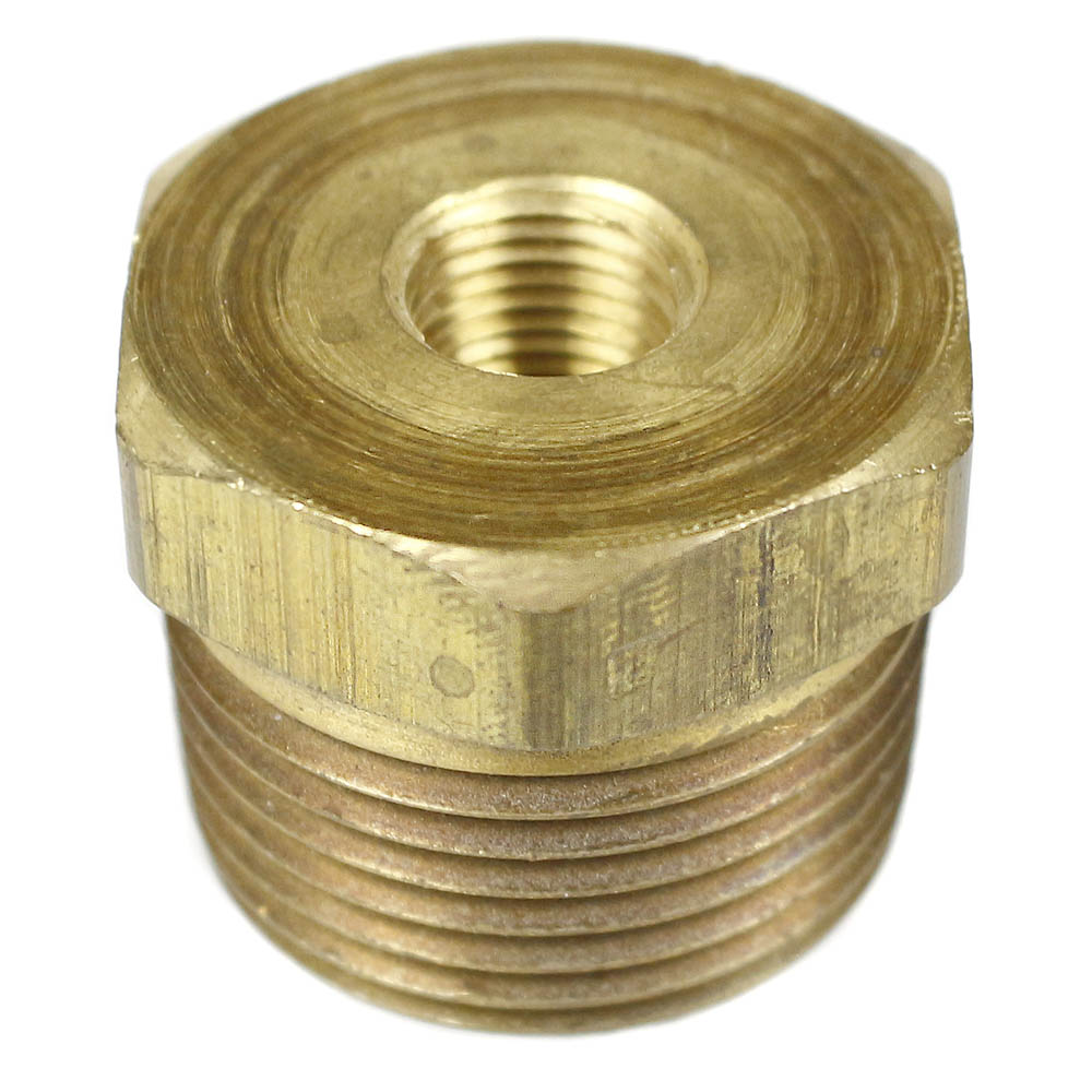 Use this 3/4" MNPT x 1/8" FNPT brass bushing reducer for grease, fuels, LP and Natural gas, refrigeration, instrumentation, and hydraulic systems. This all-brass reducer works great with brass, bronze, copper, steel, aluminum, and iron pipes. Meets specifications and standards of ASA, ASME, and SAE.