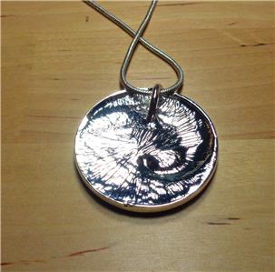 The necklace measures 18 inches long and has a 3 inch extender to a max length of 21 inches and has a lobster claw clasp. The pendant measures 1 1/2 inches round.