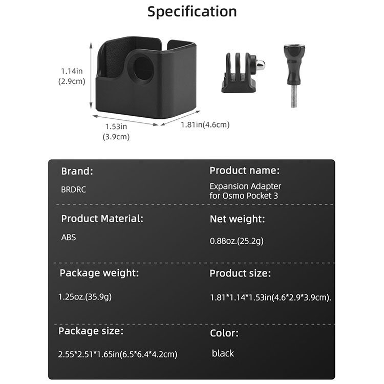 Size: 4.6x2.9x3.9cm (Adapter Frame), 2.4x2.9x1.7cm (Adapter), 4.8x1.6x1.6 (Screw)